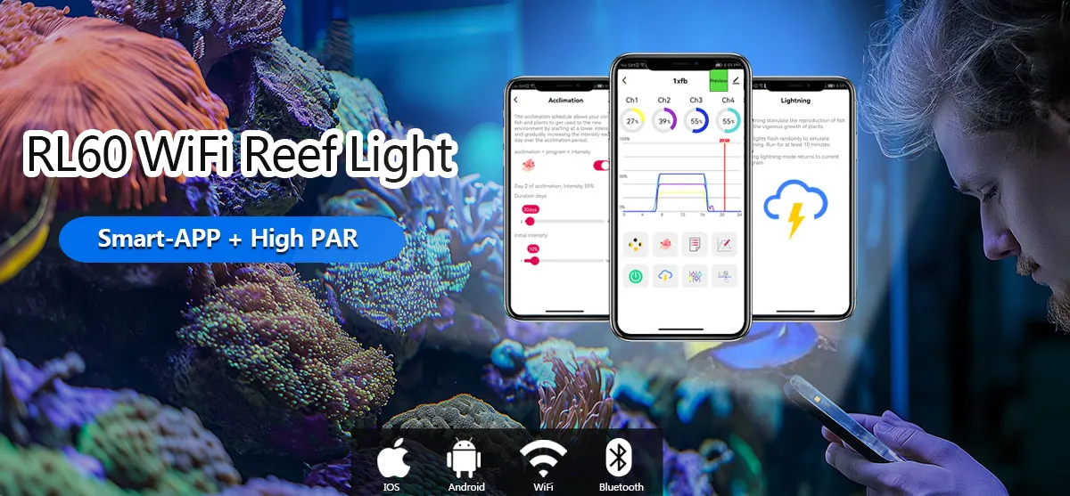 - WiFi Smart Control – Easily control brightness, timing, and light channels directly from your smartphone or tablet.