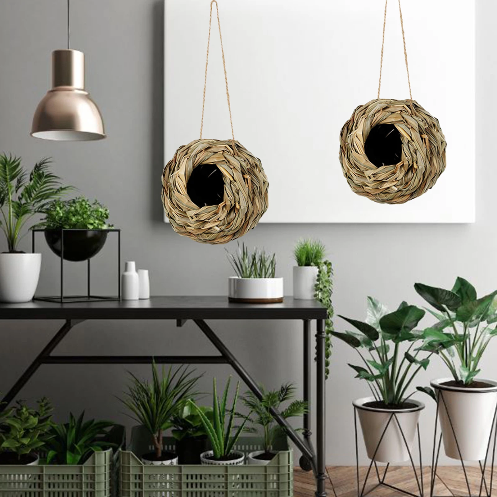 - Bird Safety: Each natural birdhouse is equipped with a strong twine, allowing you to hang it on branches or fences. The spherical design makes the nest sturdy enough to withstand strong winds. The round hole opening makes it easier for birds to enter and prevents access by squirrels.