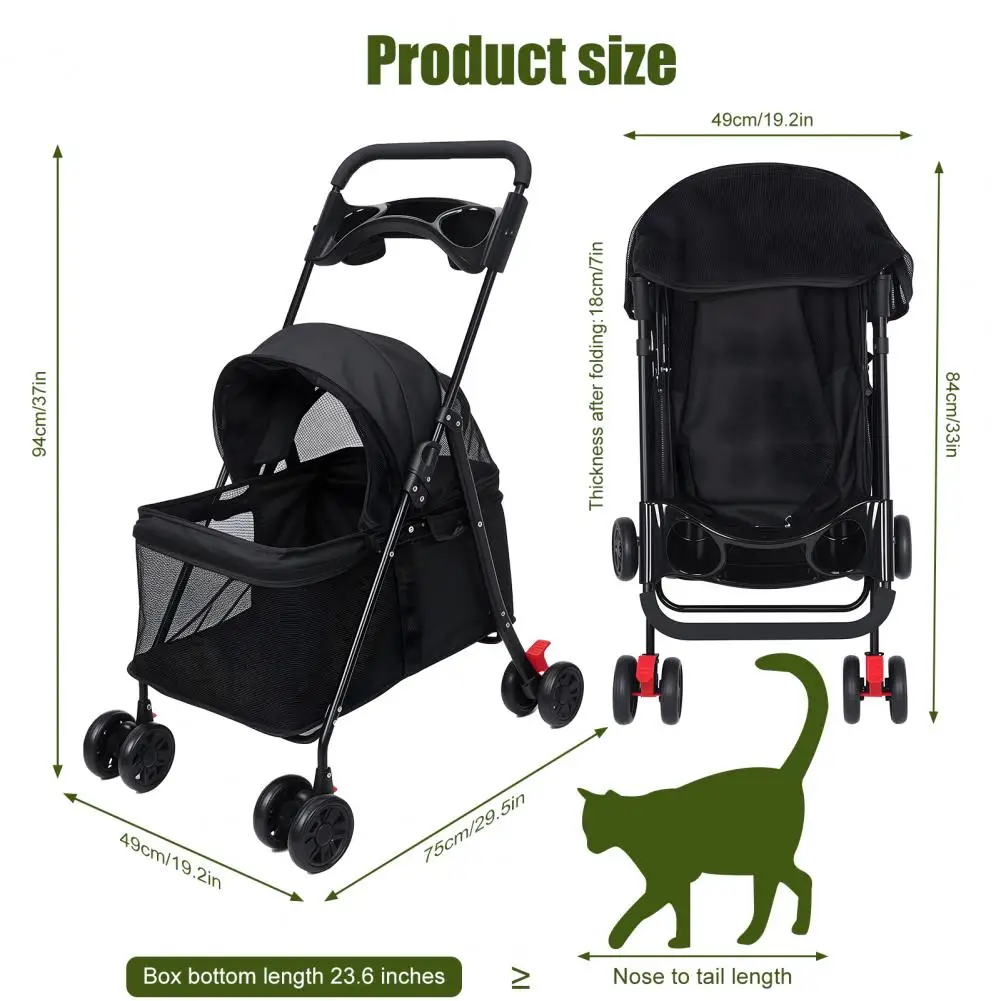 Durable Material: The stroller frame is made of high-strength metal for durability and stability. It is suitable for small and medium-sized cats and dogs. The Oxford cloth is comfortable against pet skin, bite-resistant, scratch-resistant, and waterproof for longer-lasting use.