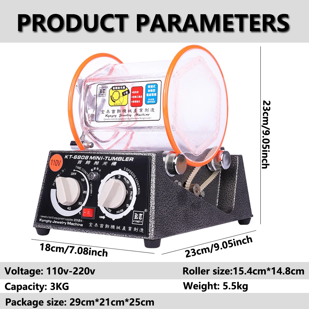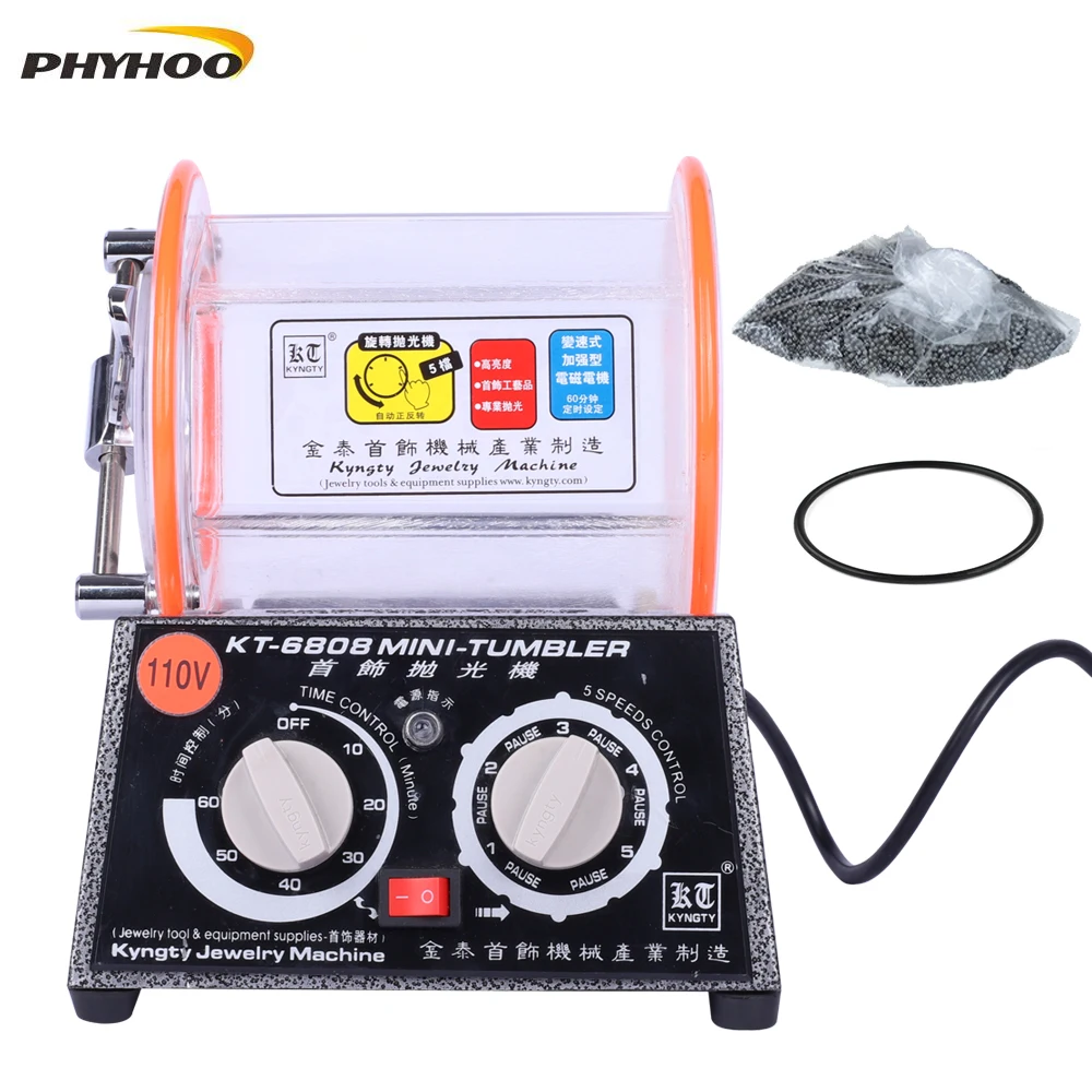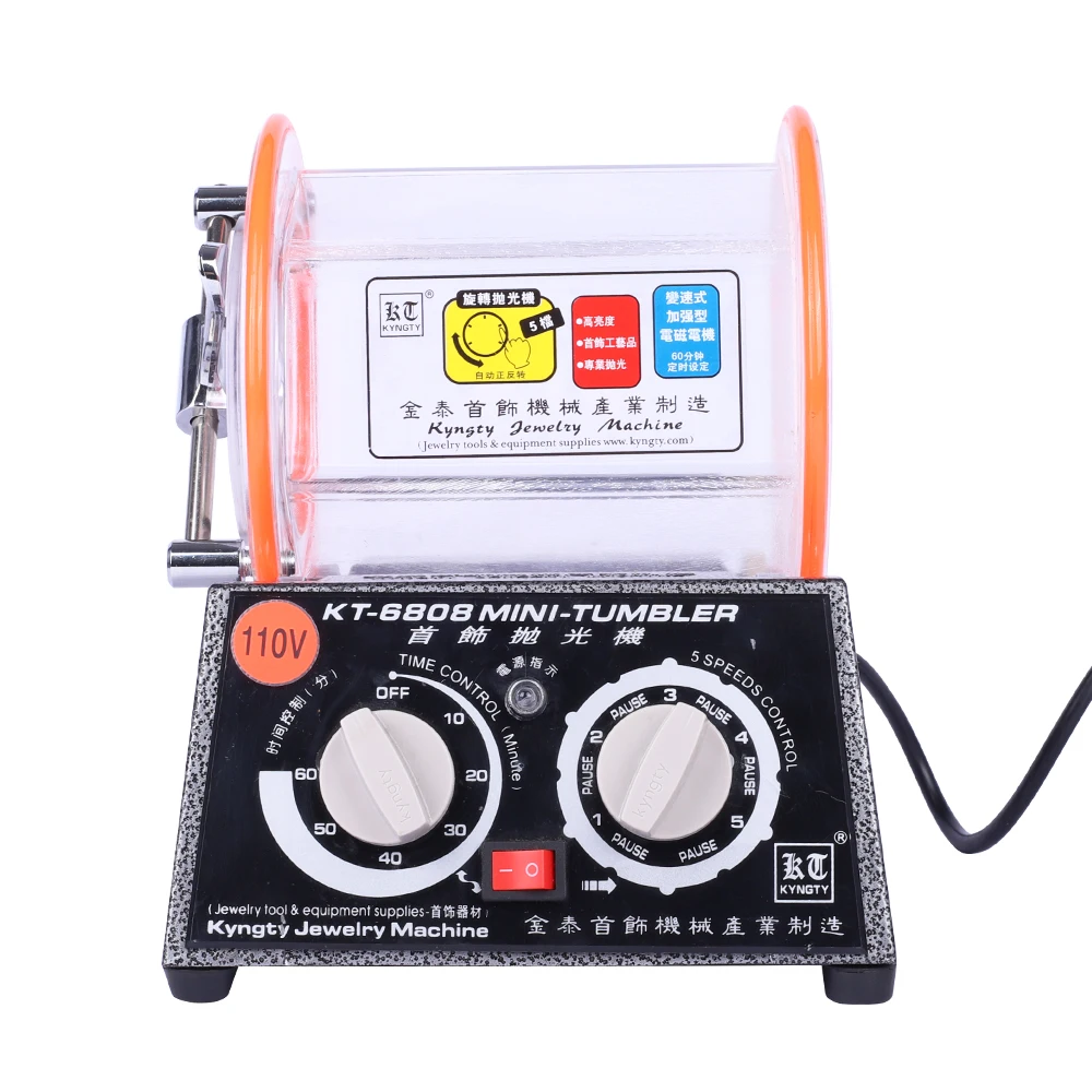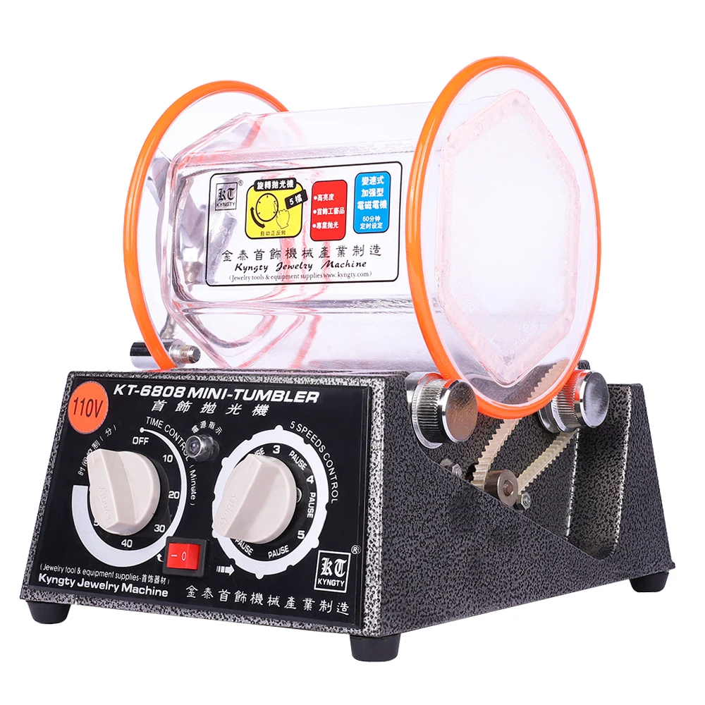 The KT-6808 Mini Tumbler Polishing Machine is an efficient tool for polishing jewelry and small metal parts. It removes rust and burrs while restoring a smooth, shiny finish, making it suitable for personal use and small workshops.