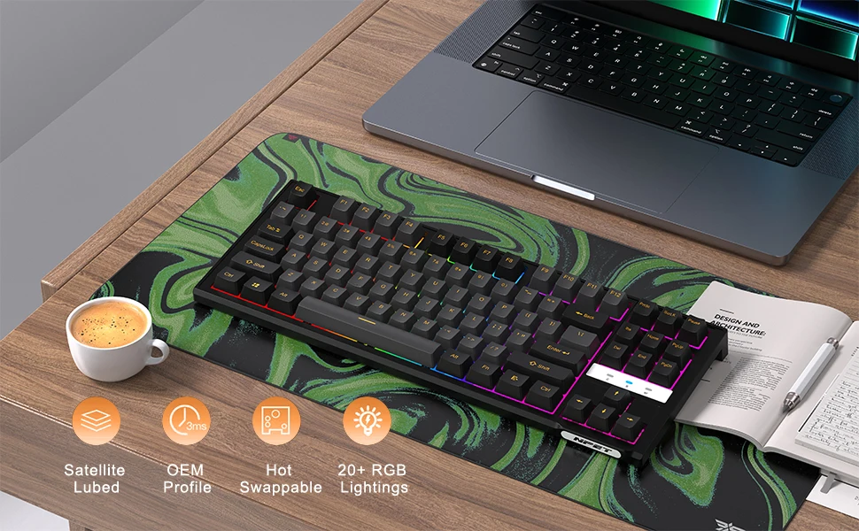 - Pre-Lubed Satellite Stabilizers: Smoother, quieter larger keys like Space, Shift, and Enter.