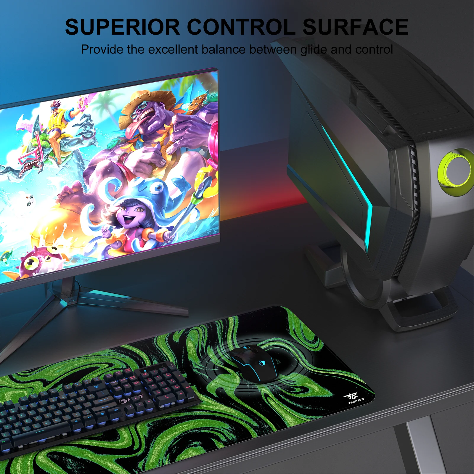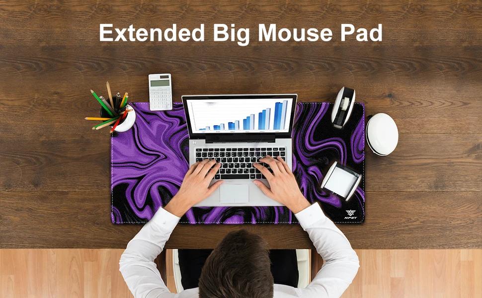 This extended desk mat blends beauty and function. Whether you are gaming, studying, or working from home, the NPET N110 helps keep your setup organized and polished.
