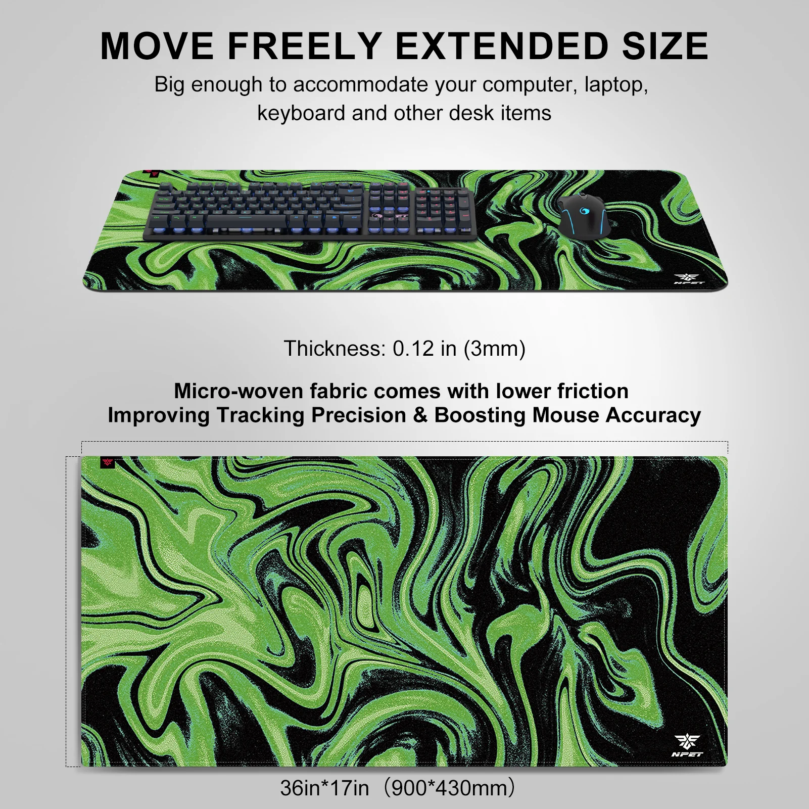 NPET Extended Big Mouse Pad 35×17-inch Non-Slip