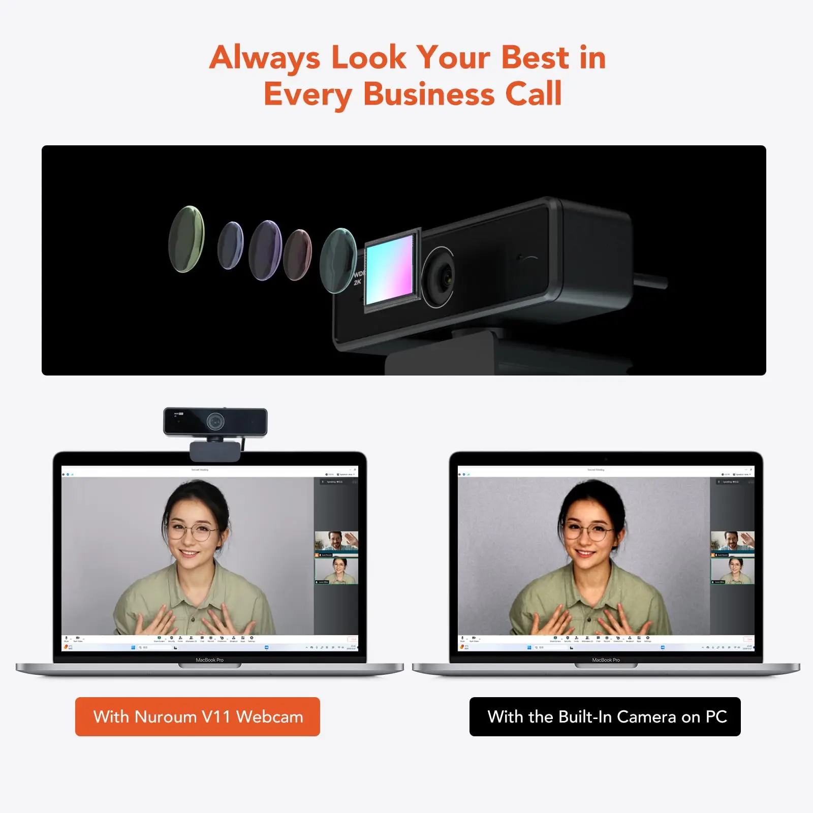 Nuroum 2K QHD Webcam 60FPS Dual Mode