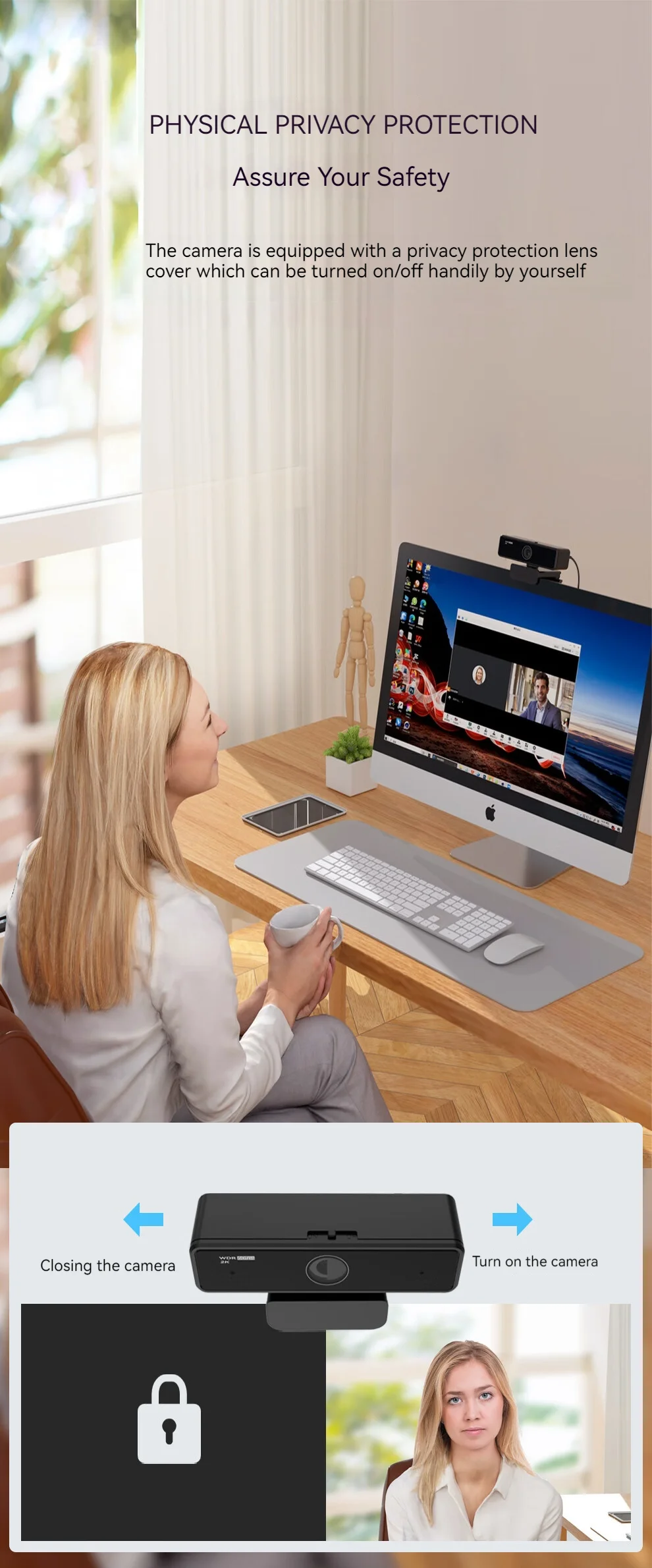 - Automatic light correction and privacy protection: Intelligent exposure and low light correction help you look balanced in meetings. The physical lens cover and LED indicator show camera status and add privacy when not in use.