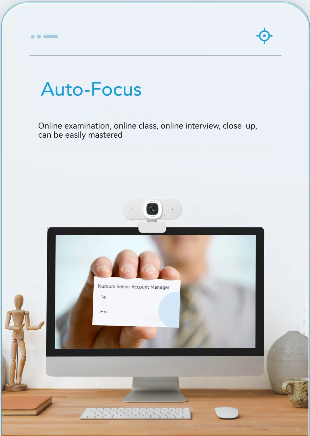 Adjust the angle your way. The webcam head supports 360° panning and 30° tilting, giving you full control over what shows on camera. Place it on a table, clip it to a screen or laptop, or mount it on a stand or tripod for the setup that fits your space.