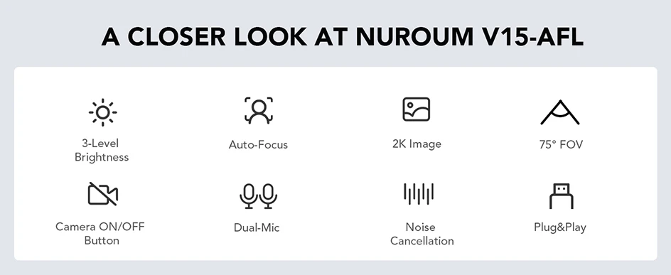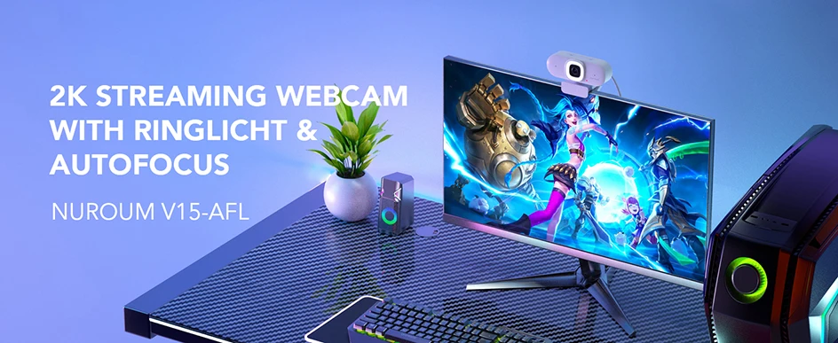 NUROUM V15-AFL 2K Autofocus Webcam Ring Light