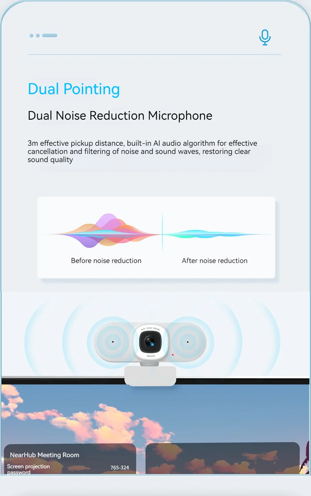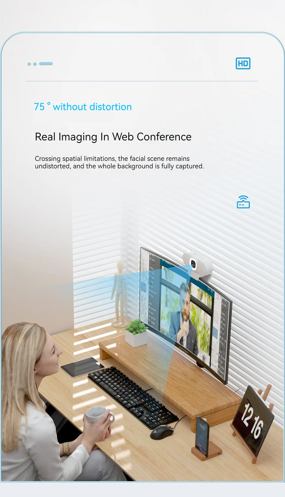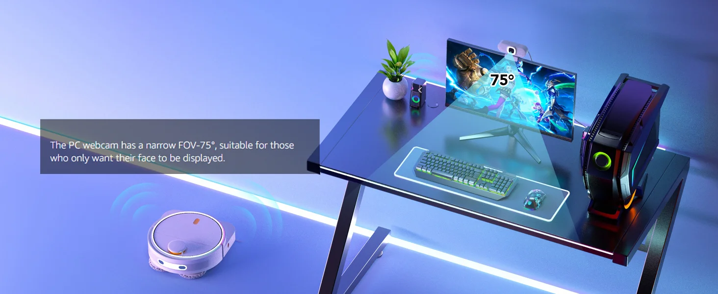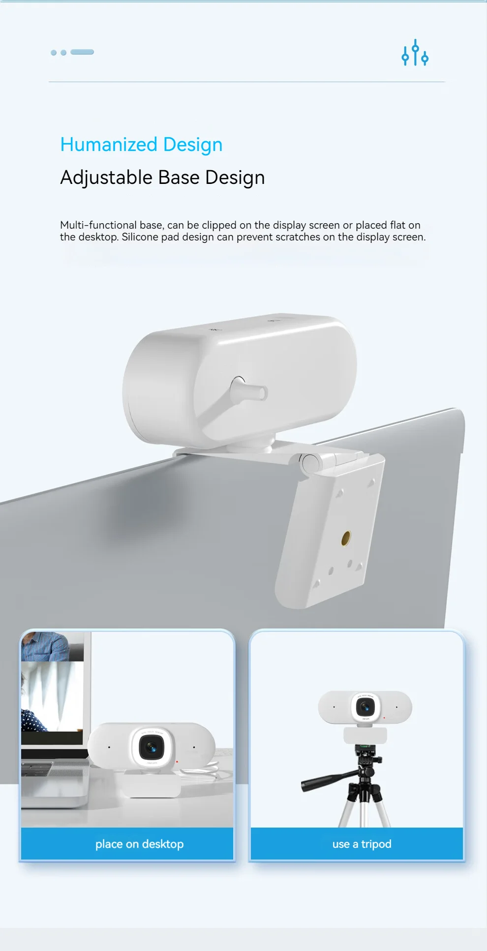 Adjust the angle your way. The webcam head supports 360° panning and 30° tilting, giving you full control over what shows on camera. Place it on a table, clip it to a screen or laptop, or mount it on a stand or tripod for the setup that fits your space.