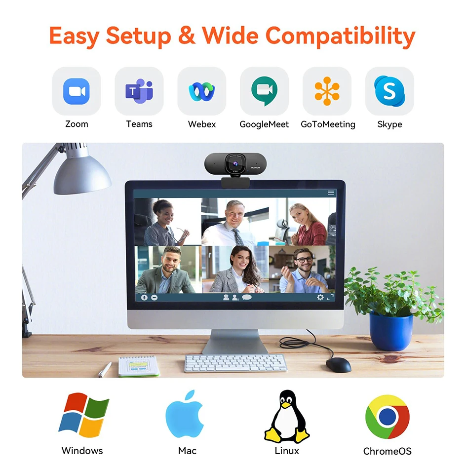 Setup is simple. Connect the webcam to your computer using the included 1.5m USB 2.0 Type-C cable, and it will be recognized automatically. No drivers or extra software required, you can be ready to go in under a minute.
