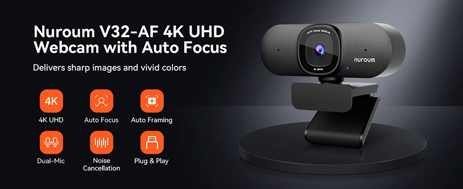 NUROUM V32AF 4K AI Noise Cancelling Webcam
