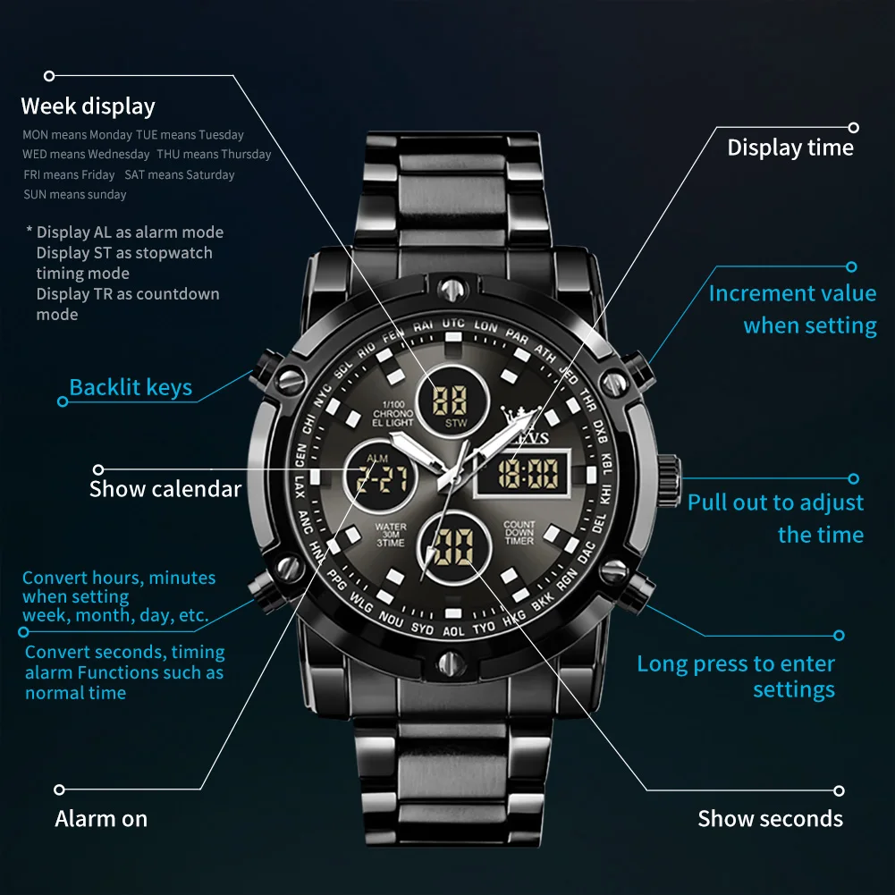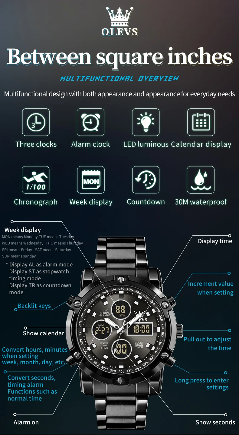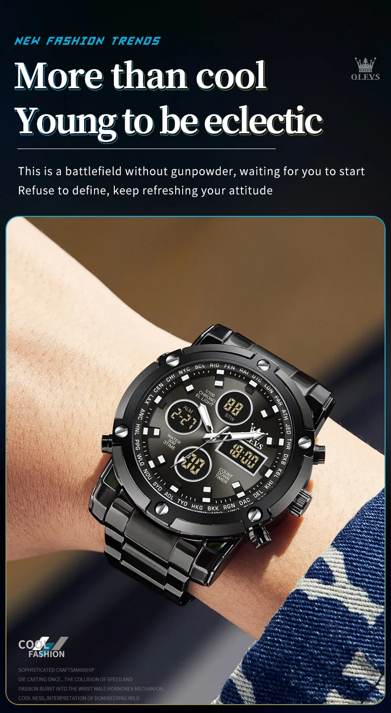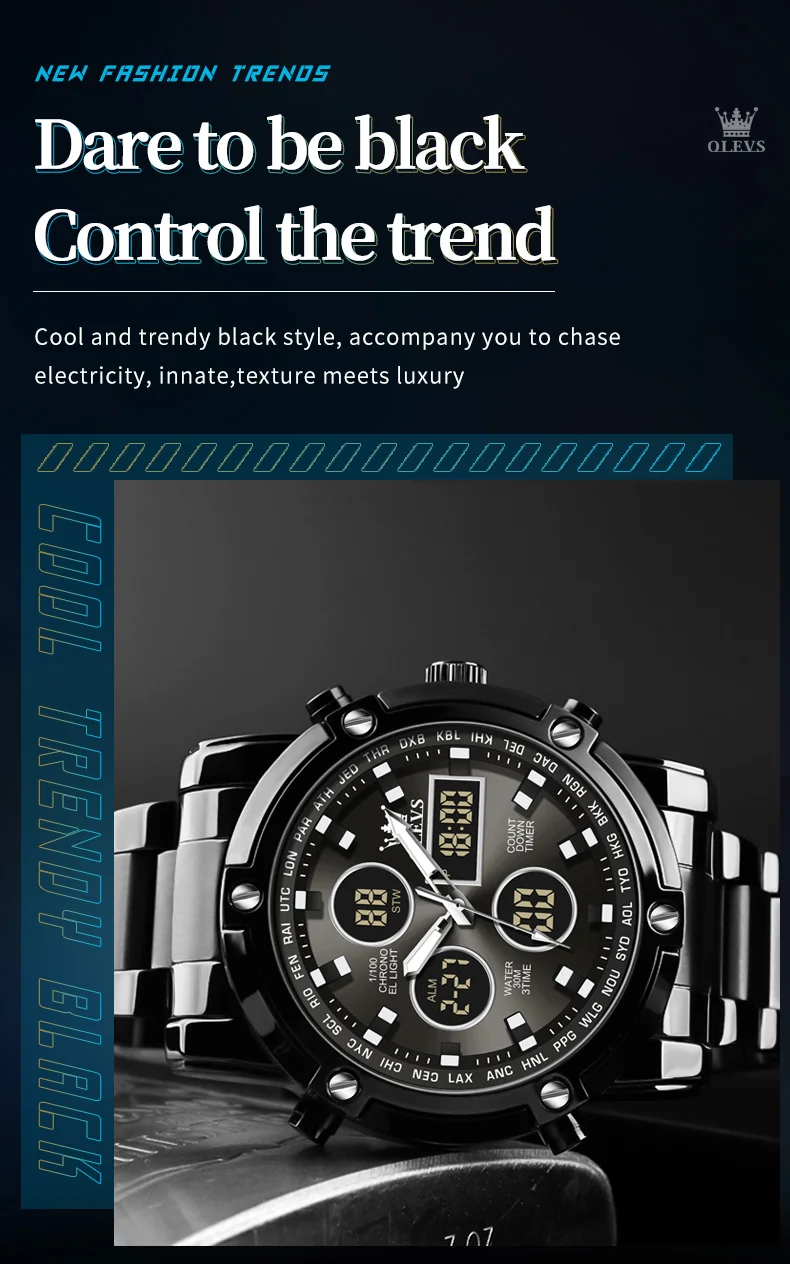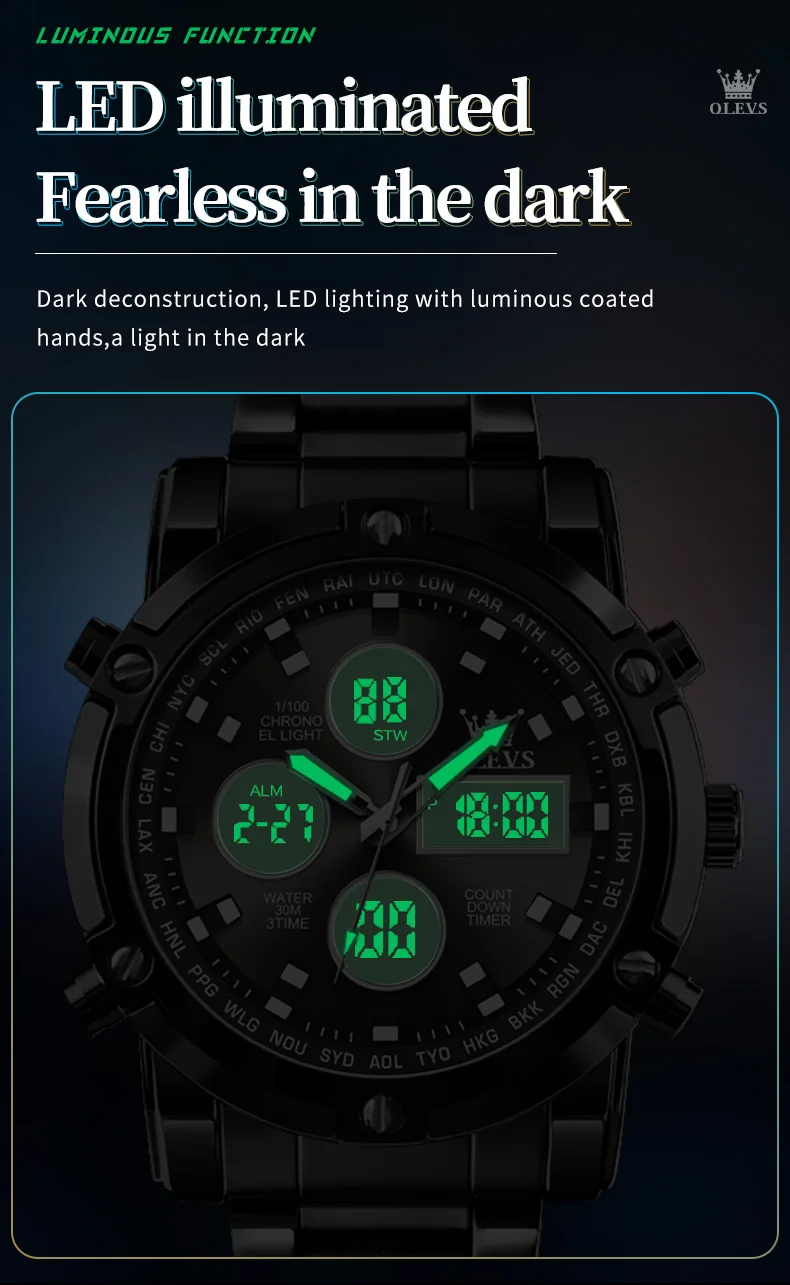 Discover the epitome of sophistication and functionality with the OLEVS Original Men’s Watch, a masterpiece designed for the modern man. This watch is not just a timepiece; it’s a statement of style and precision. Featuring a generous 48mm dial, this watch is designed to stand out. The big, multifunctional chronograph dial is not only easy to read but also adds a layer of complexity and elegance to the watch’s appearance.