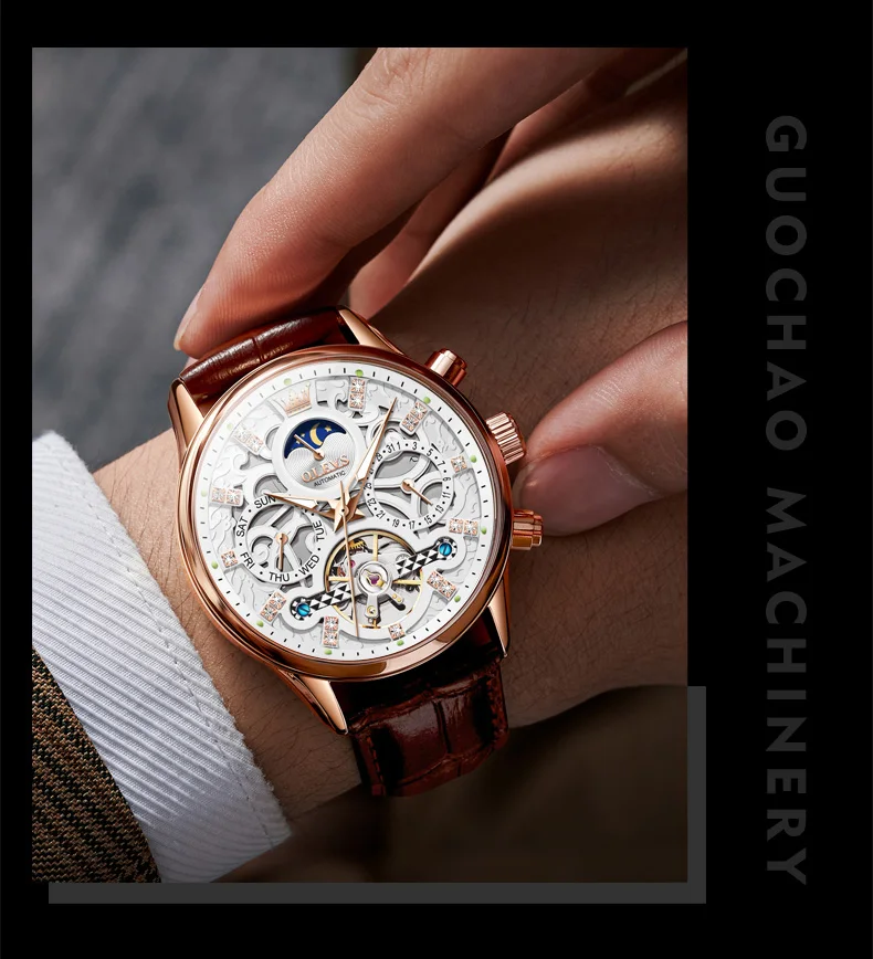 Elevate your style and punctuate your wardrobe with the OLEVS Automatic Men’s Watch. It’s not just a watch; it’s a piece of art that tells time.