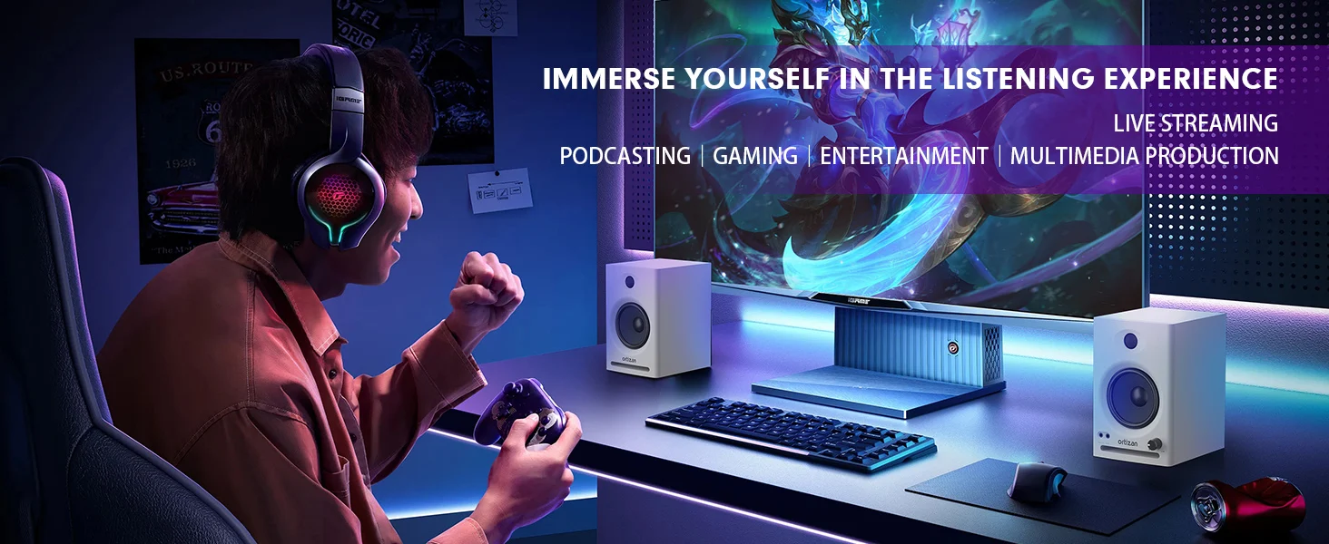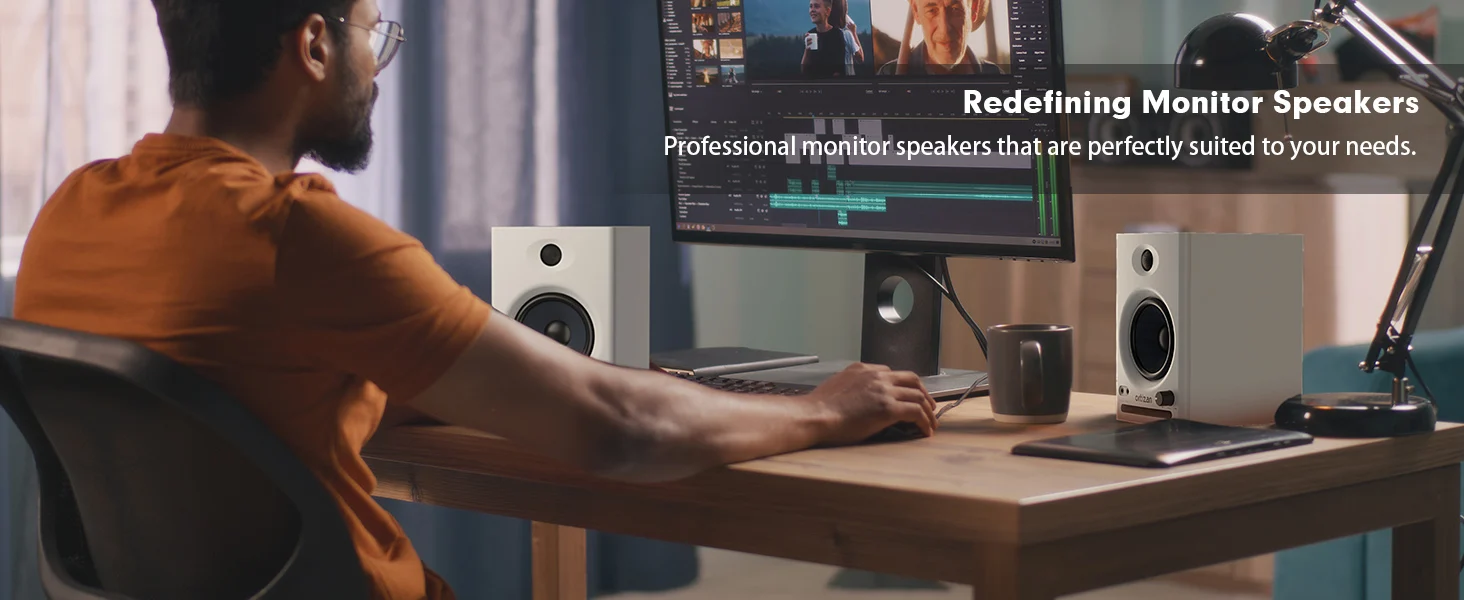 Built-in studio monitor and HiFi mode. Use Monitor Mode for a more straightforward and accurate sound when creating content. Switch to Music Mode for more pleasing and melodious tones when enjoying music. You can be a creator anytime, whether it’s a music video or a live broadcast; these speakers can help you.