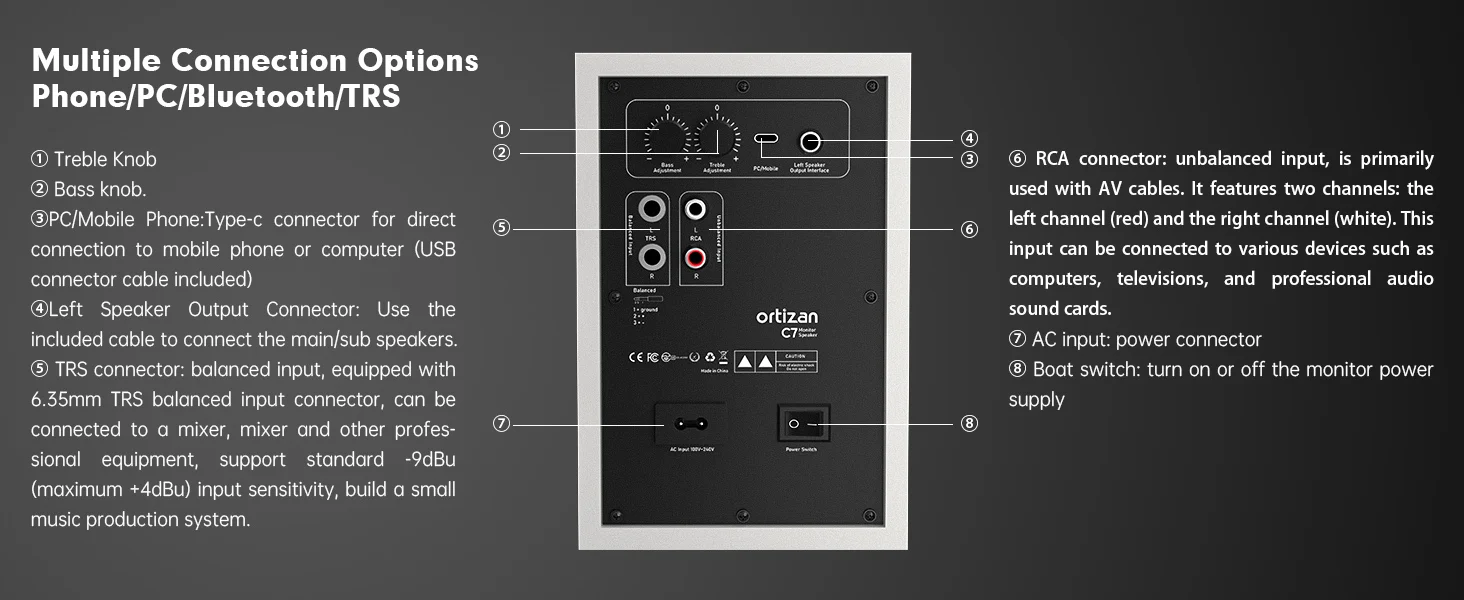 Ortizan C7 Dual-Mode Studio Monitor Speakers