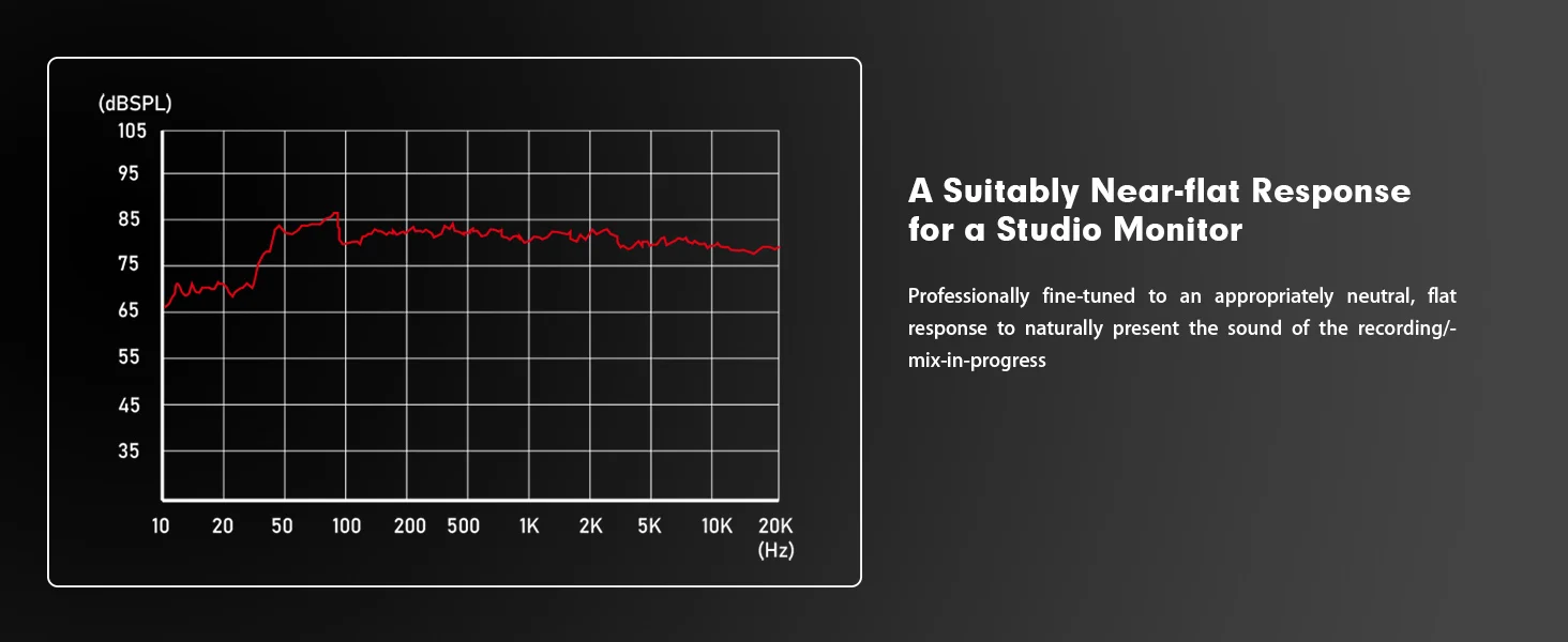 According to the characteristics of the speaker units, after dozens of professional adjustments in the laboratory, subtle comparisons are made to obtain the flat curve required by the monitor speakers. It faithfully reproduces audio signals with balanced sound across high, mid, and low frequencies, without any modification or enhancement.
