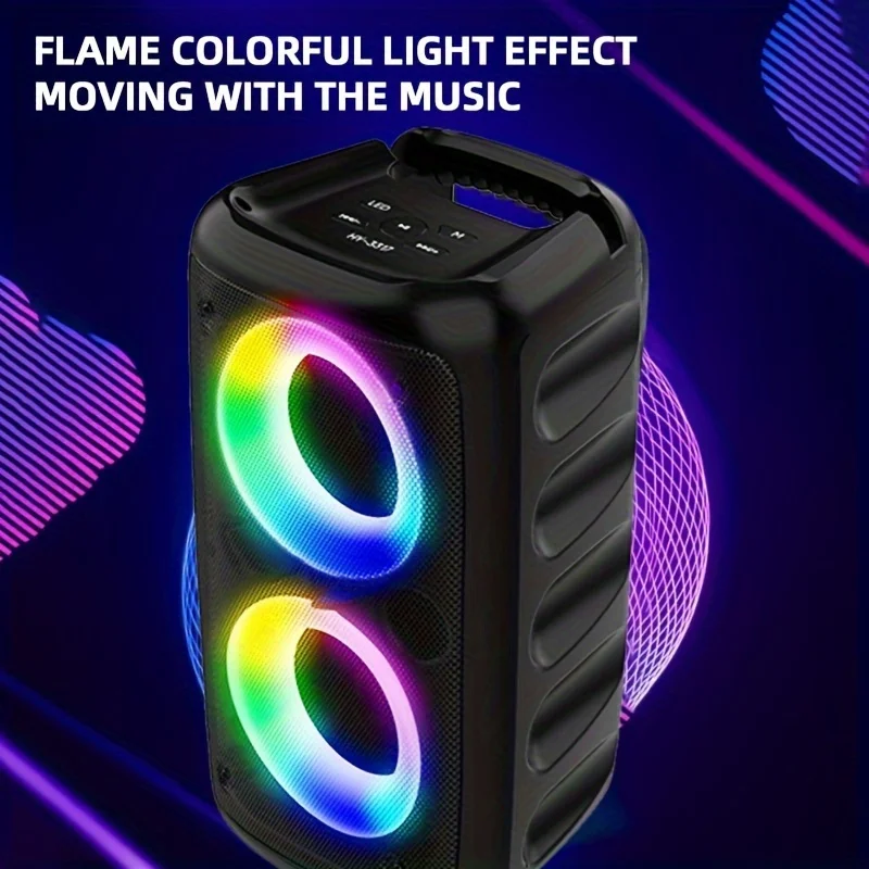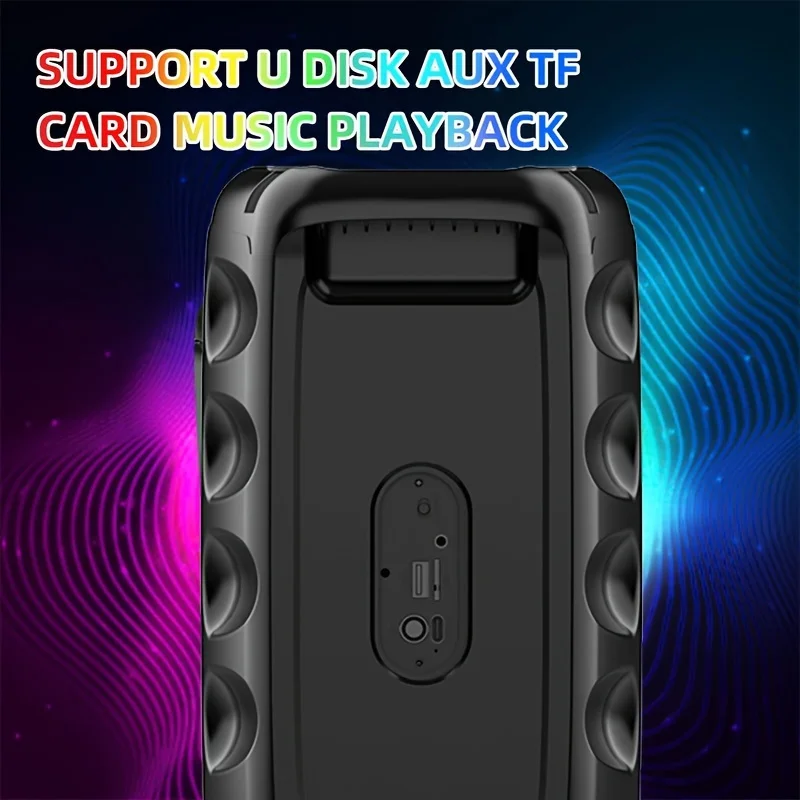 - Functions: Bluetooth connection, USB flash drive reading, TF card reading, Aux interface, FM receiver, TWS pairing, Microphone interface supports karaoke