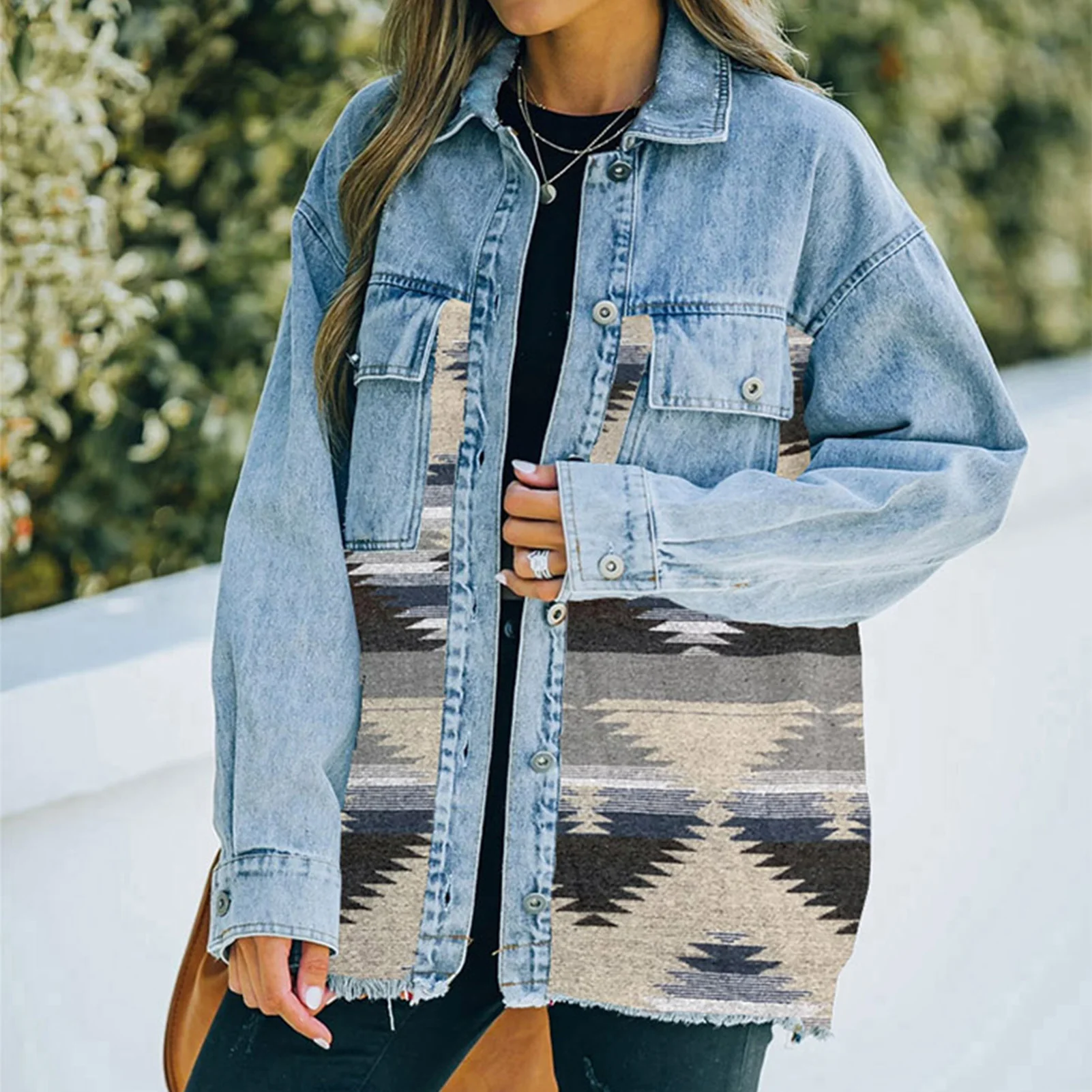 - Versatile Pairing: The denim stitching jacket offers diverse styling options, pairing seamlessly with a variety of accessories such as shoes, bags, and jewelry, along with jeans.