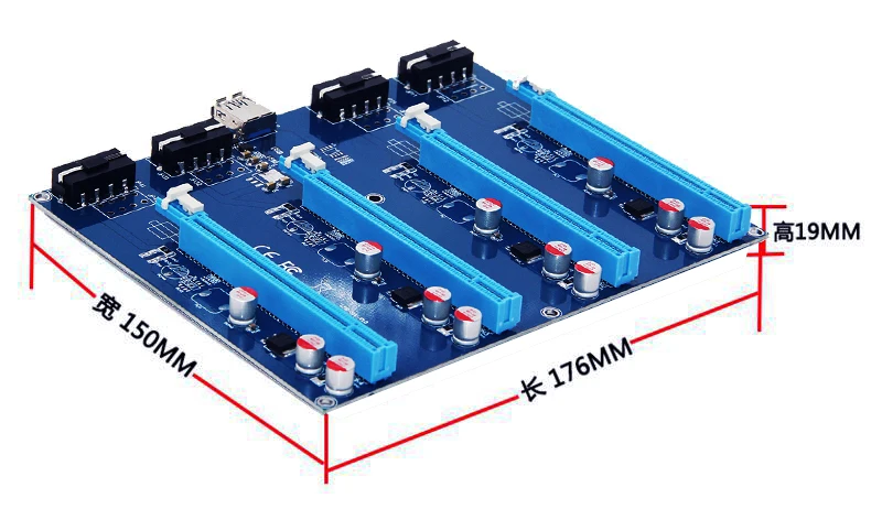 Please note: This card adapter does not support hot plugging. BefoPCIe 1X to 4 16X Slot Riser Card Adapterre starting the computer, you must connect the graphics card, power supply, and other components properly.