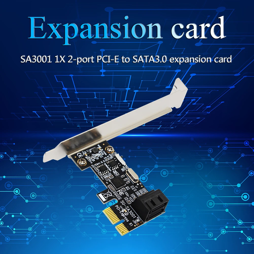 - Connector: PCI-E 1X plug to 2 SATA 3.0 slots