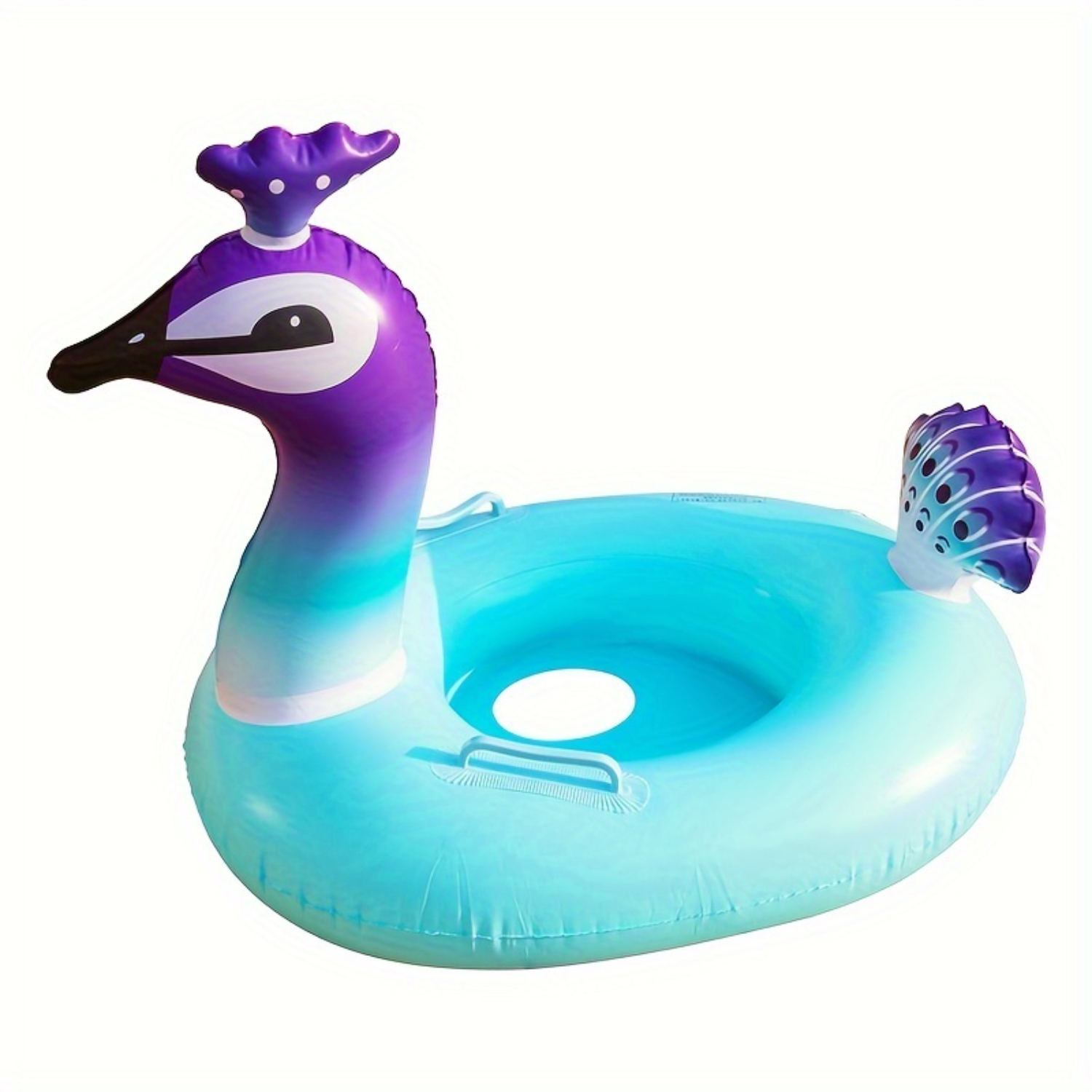 This Inflatable Swimming Ring Sitting Circle serves as a swim trainer for beginners. Its vibrant peacock design and sturdy handles provide both fun and safety, while the durable PVC material ensures long-lasting water adventures.