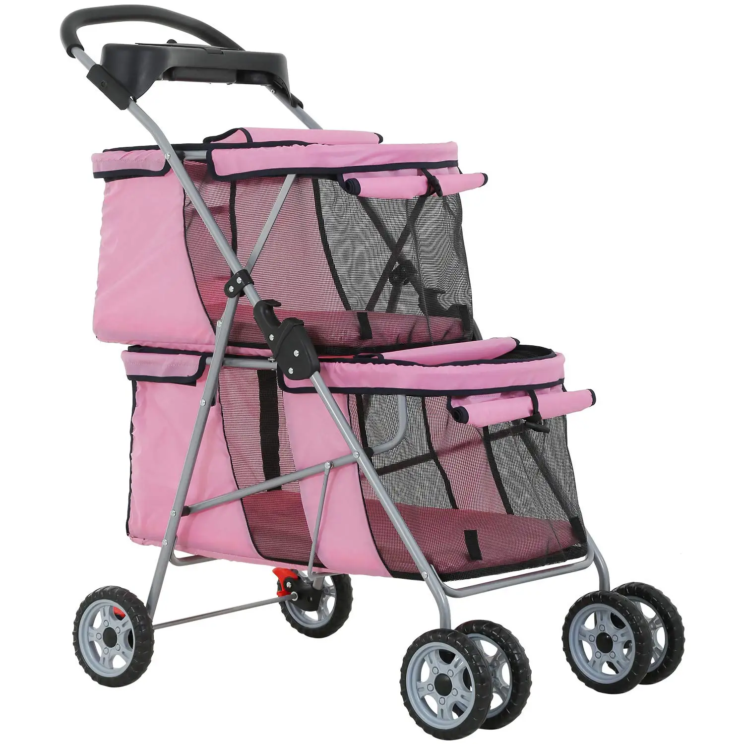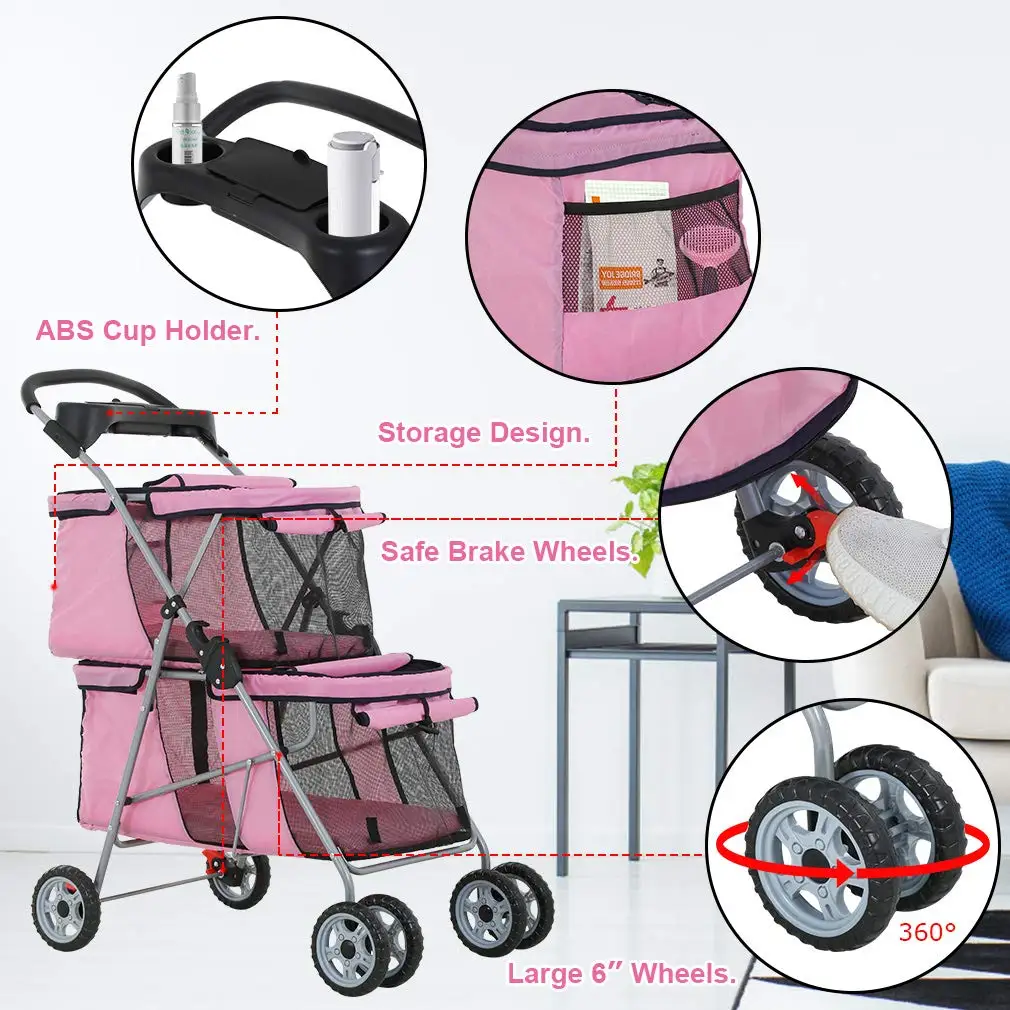Dog Stroller Cat Stroller Pet Carriers Bag Jogger Stroller for Small Medium Dogs Cats Travel Camping 4 Wheels Lightweight Waterproof Folding Crate Stroller with Soft Pad (Pink)