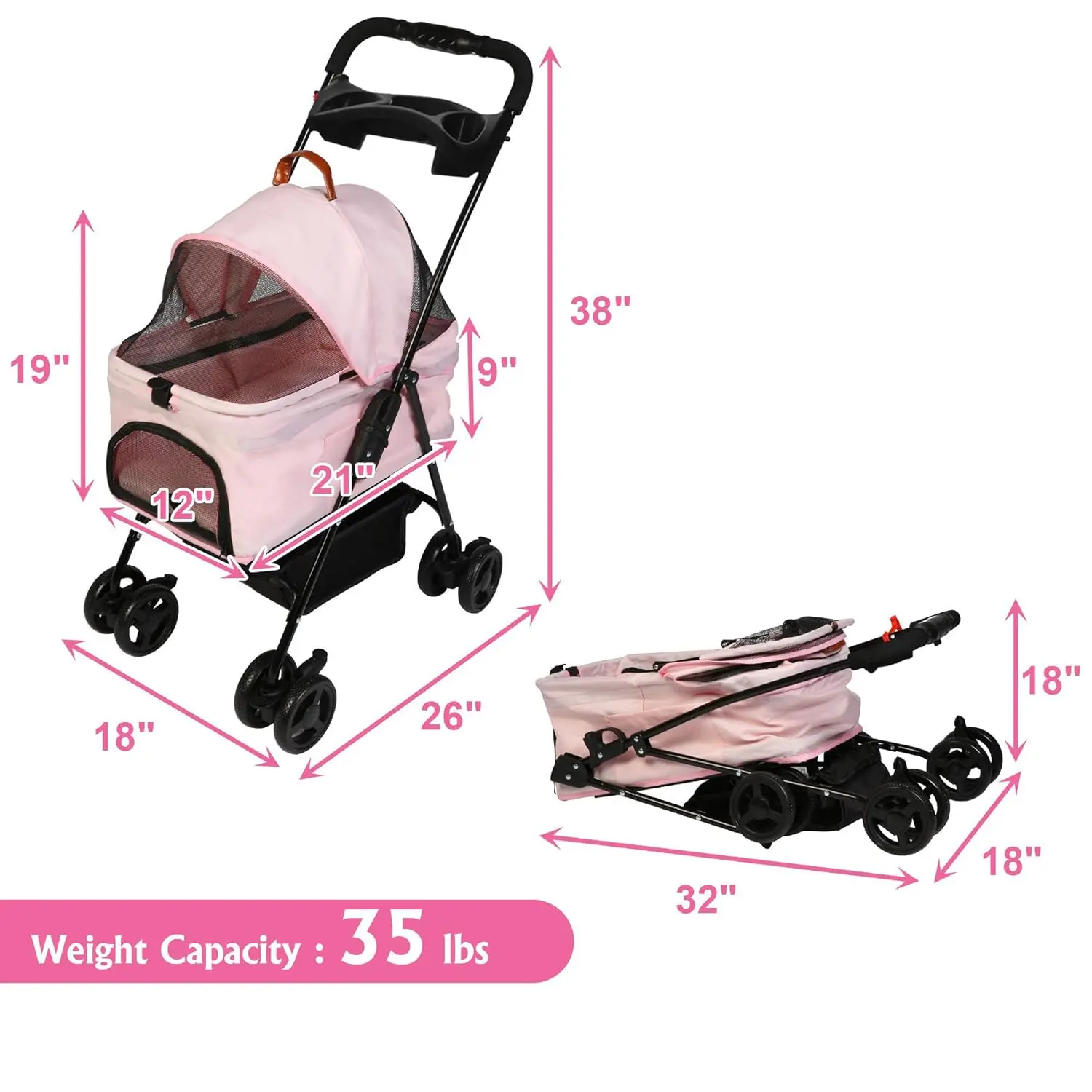 - For Pets Up to 35 Pounds: Good choice for cats, dogs, kittens, puppies, rabbits, and other small to medium animals. Includes a cup holder, suitable for daily use, such as walking, jogging, shopping, and outdoor travel.