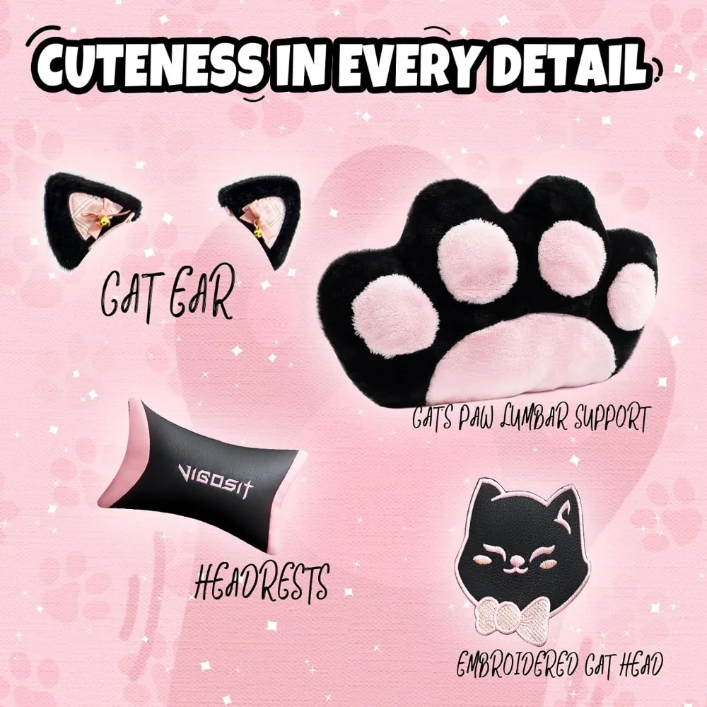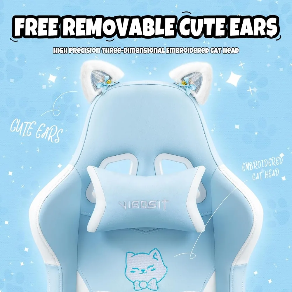 - Cute Decorations: We added cute cat ears with a cat paw-shaped lumbar pillow to this gaming chair, and an embroidered cat head logo on the back of the chair, which makes the chair look more dynamic and cute. The cat ears can be removed and replaced.