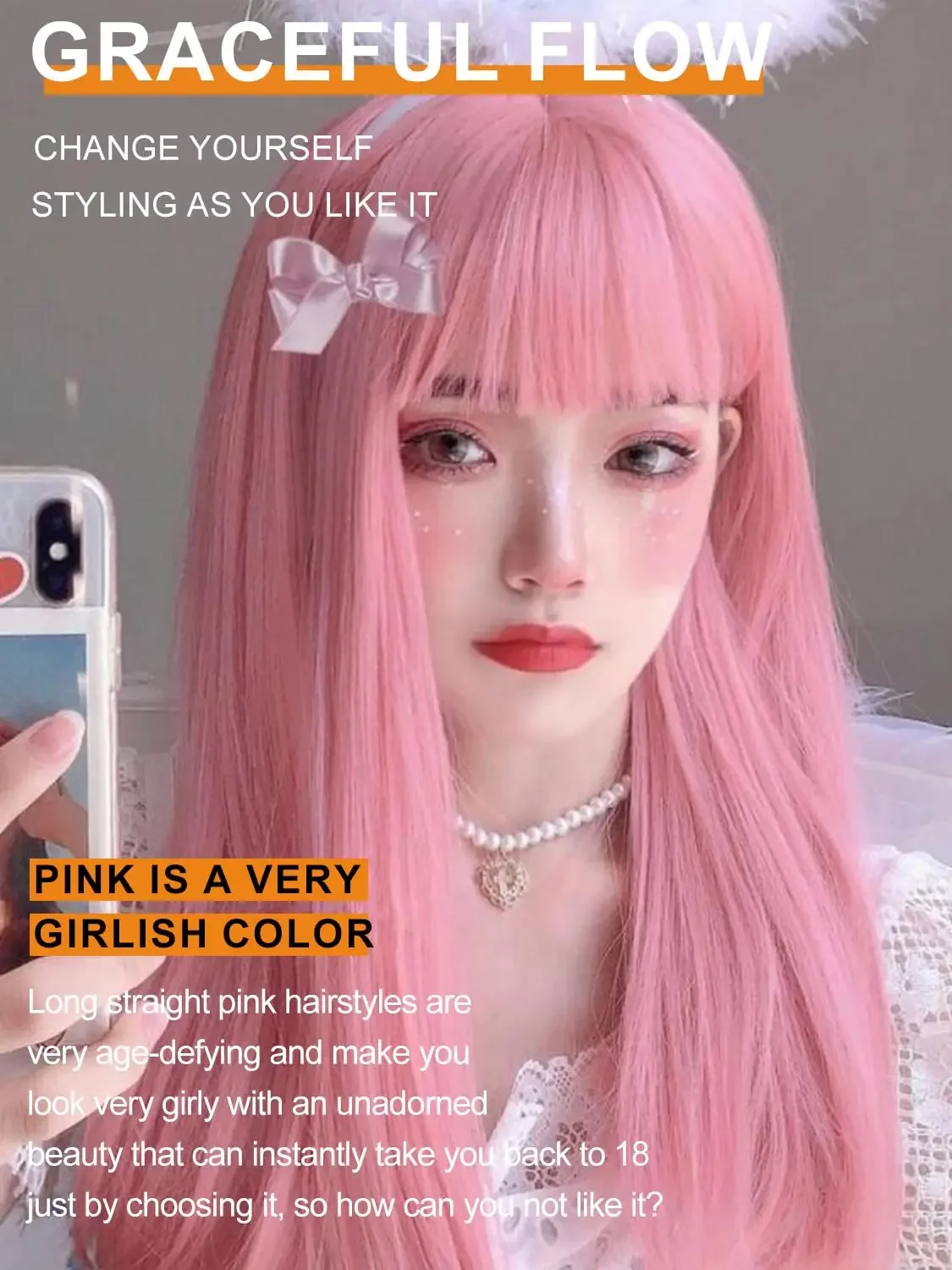 Pink Straight Wig with Air Fringe Heat Resistant
