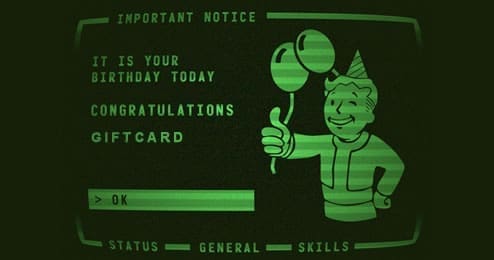 This gift card is great for the older folk out there. Pip Boy (Fallout) Happy Birthday.