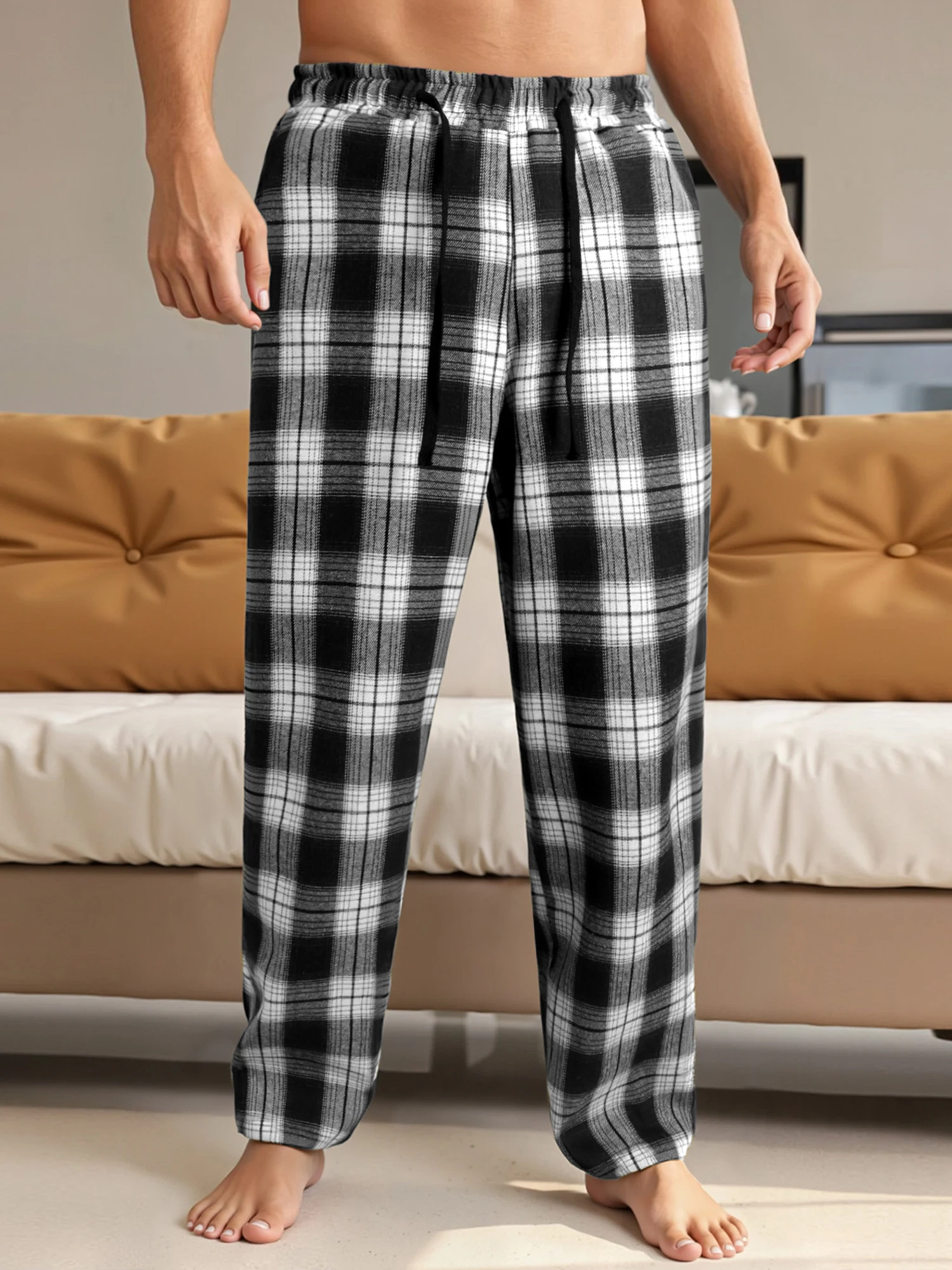 Plaid Lounge Pants with Drawstring