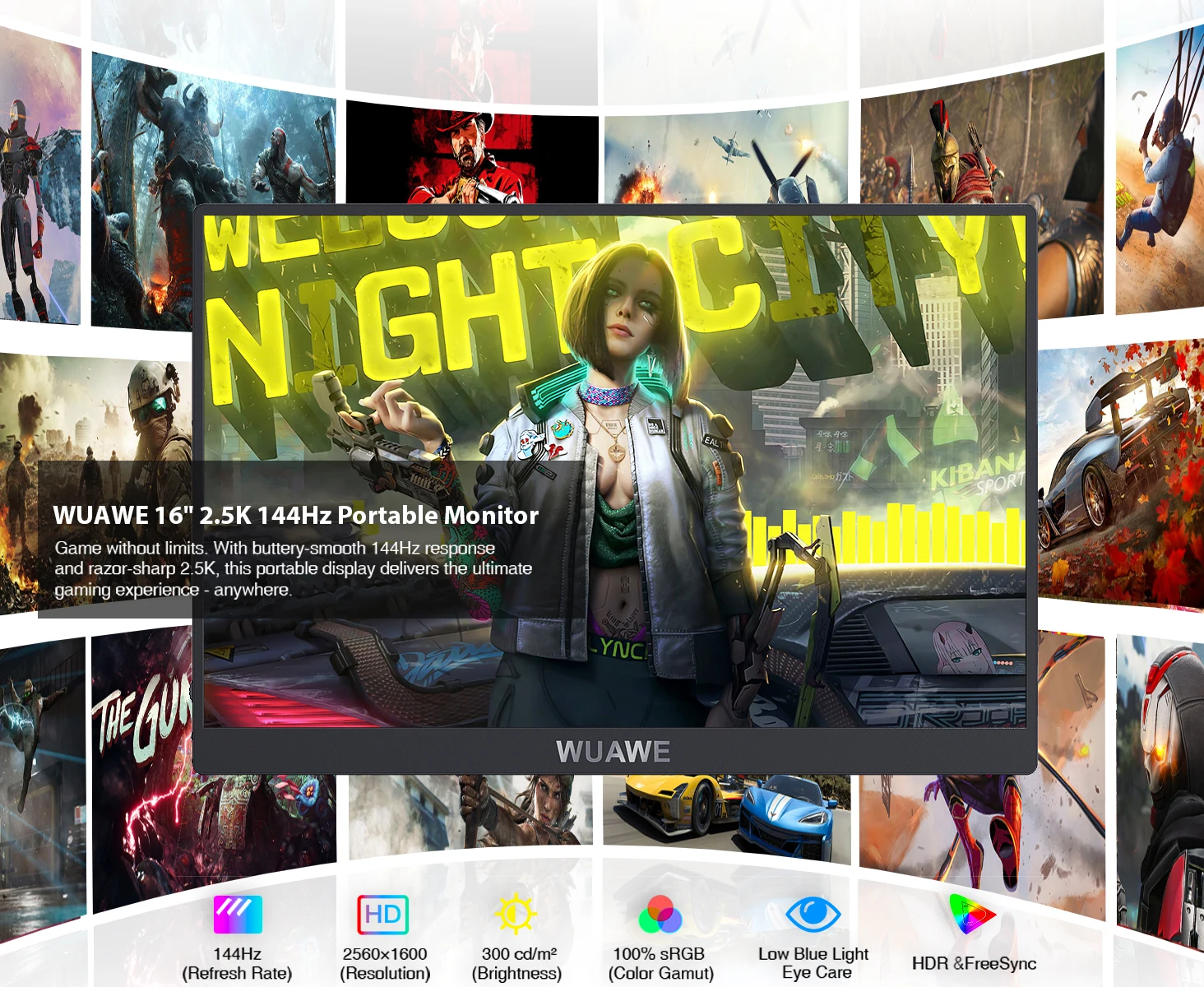 Portable 2.5K Gaming Monitor 16 Inch 144Hz Screen