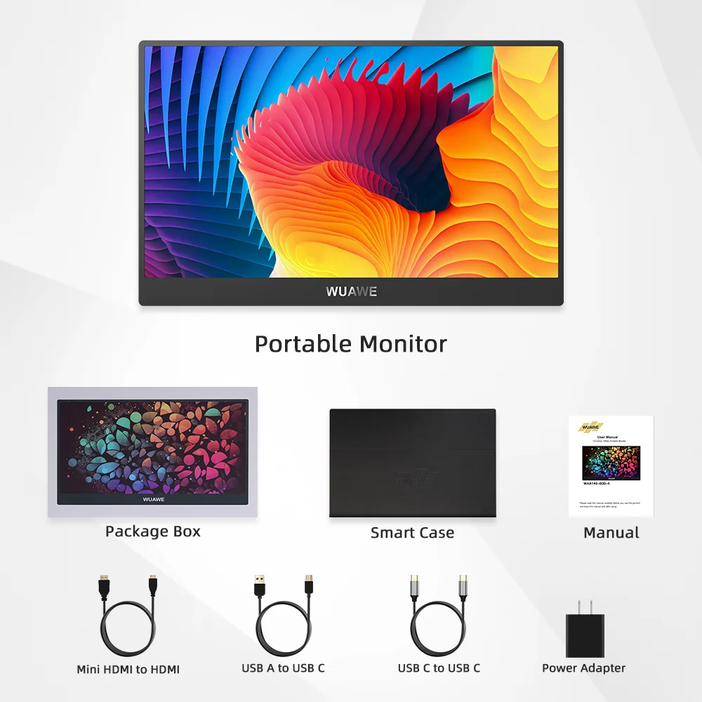🌈 Plug and Play External Monitor: The WUAWE portable laptop monitor just got even more convenient with plug-and-play functionality. Simply connect to power and display signal transmission using a USB Type-C cable – no drivers needed. With 2 full-featured Type-C ports and a mini HDMI port, easily connect to your laptop, PC, cell phone, MacBook, PS5/PS4, Xbox, and Switch for seamless connectivity on the go. (âš¡Note: Thunderbolt 3.0 or USB 3.1 Type C DP ALT-MODE required for compatibility)