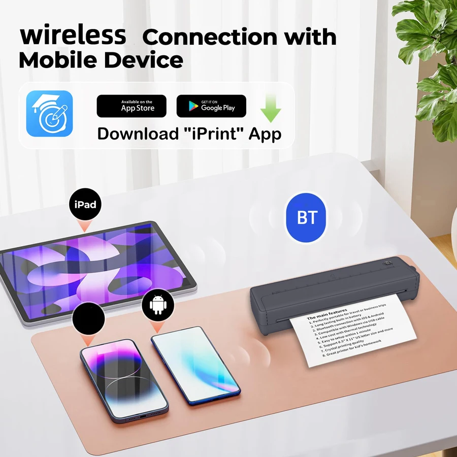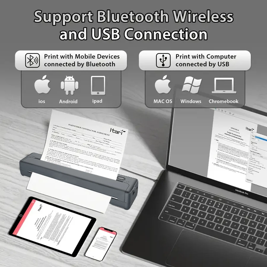 - Compact Design: Our portable printer is compact, lightweight, and space-saving. It easily fits in your bag or briefcase, making it convenient for on-the-go printing during business trips, office work, home use, or even in your car or at university.