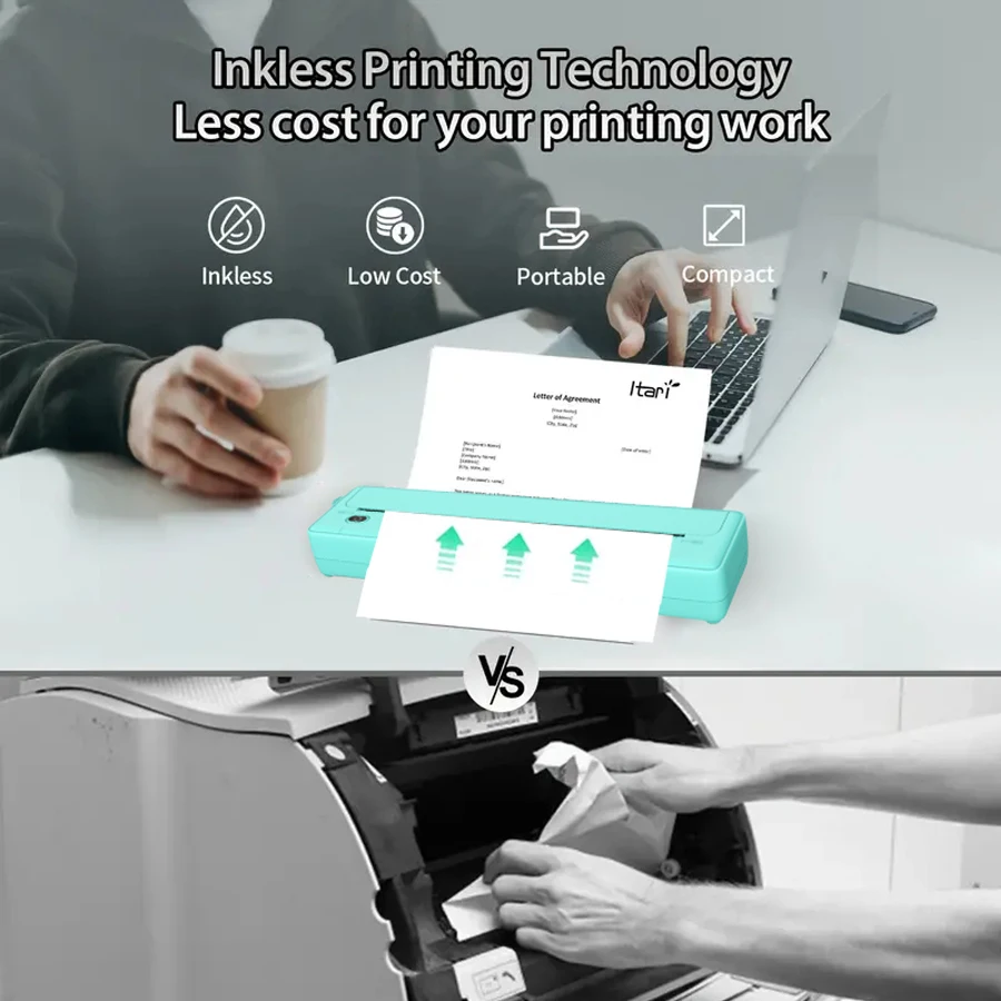 - Inkless Printing: This mini printer uses thermal technology, eliminating the need for ink, toner, or ribbons. Simply replace the thermal paper as needed.