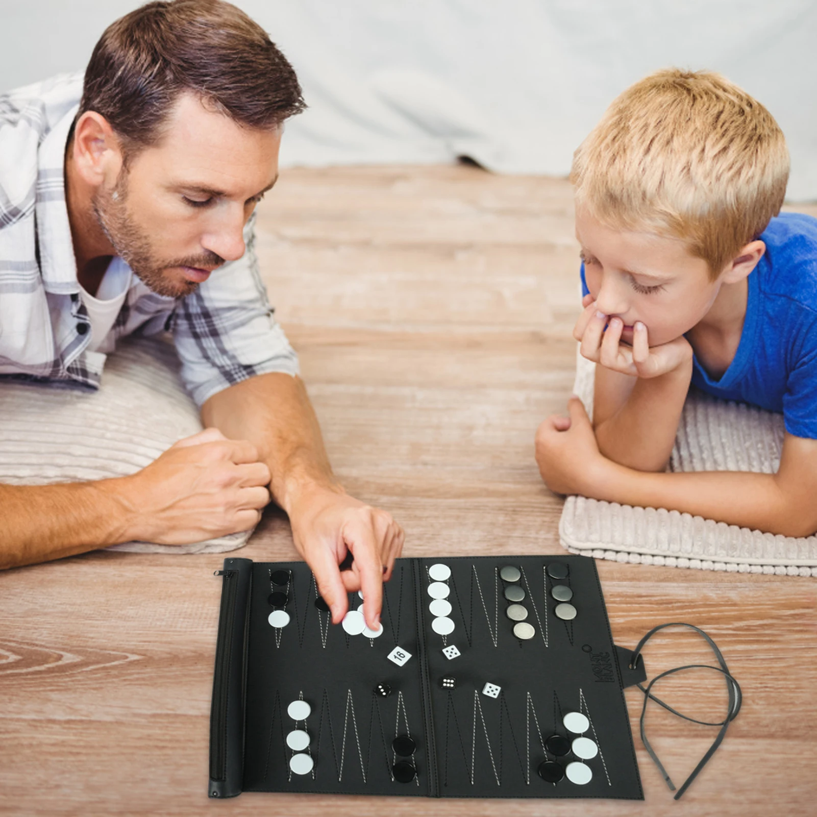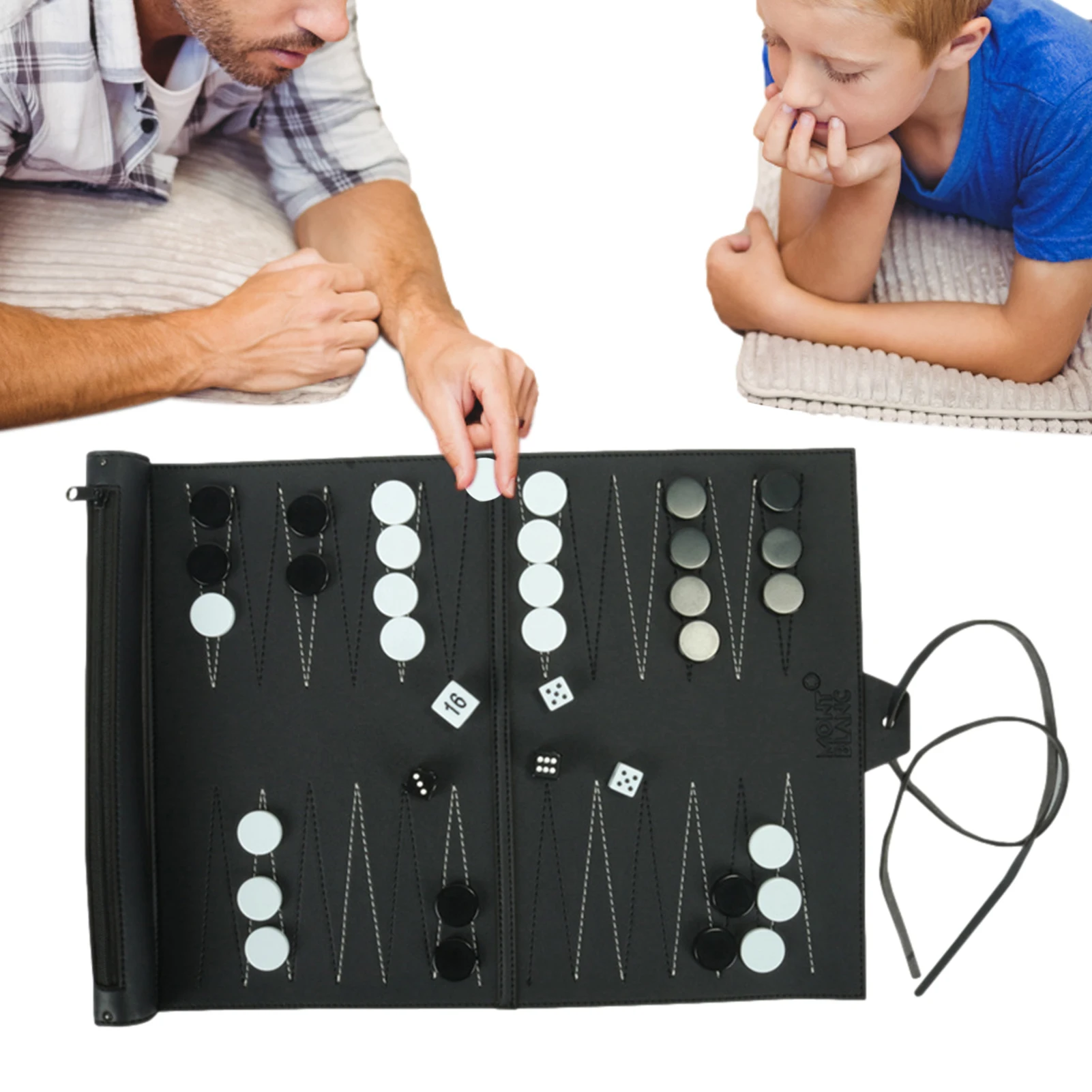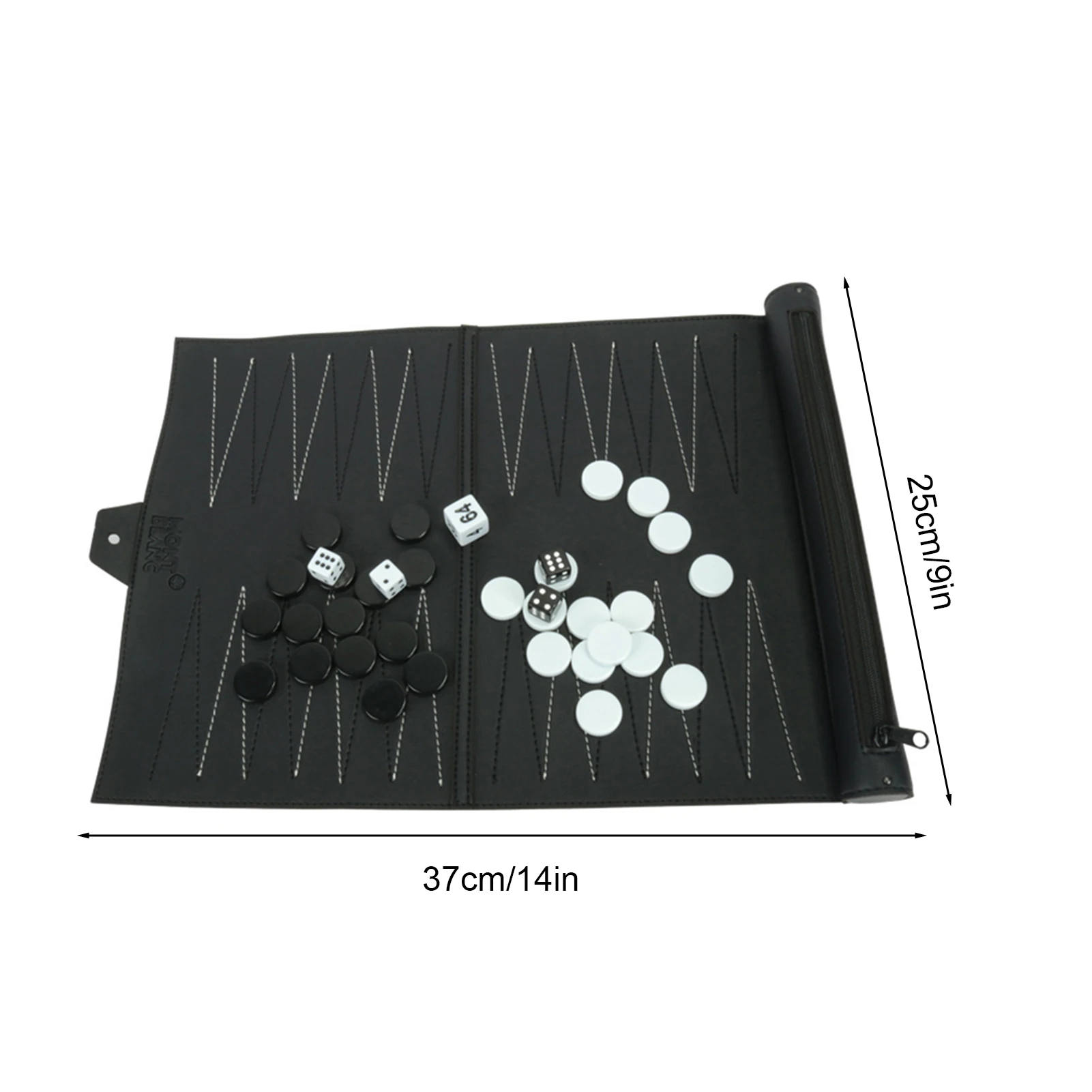 Travel Backgammon Set designed for easy game nights anywhere you go. This compact backgammon set is made with PU leather and folds up neatly with a secure zipper pocket that keeps everything together, so you can toss it in a backpack, travel bag, or carry it to parties without worrying about loose pieces.