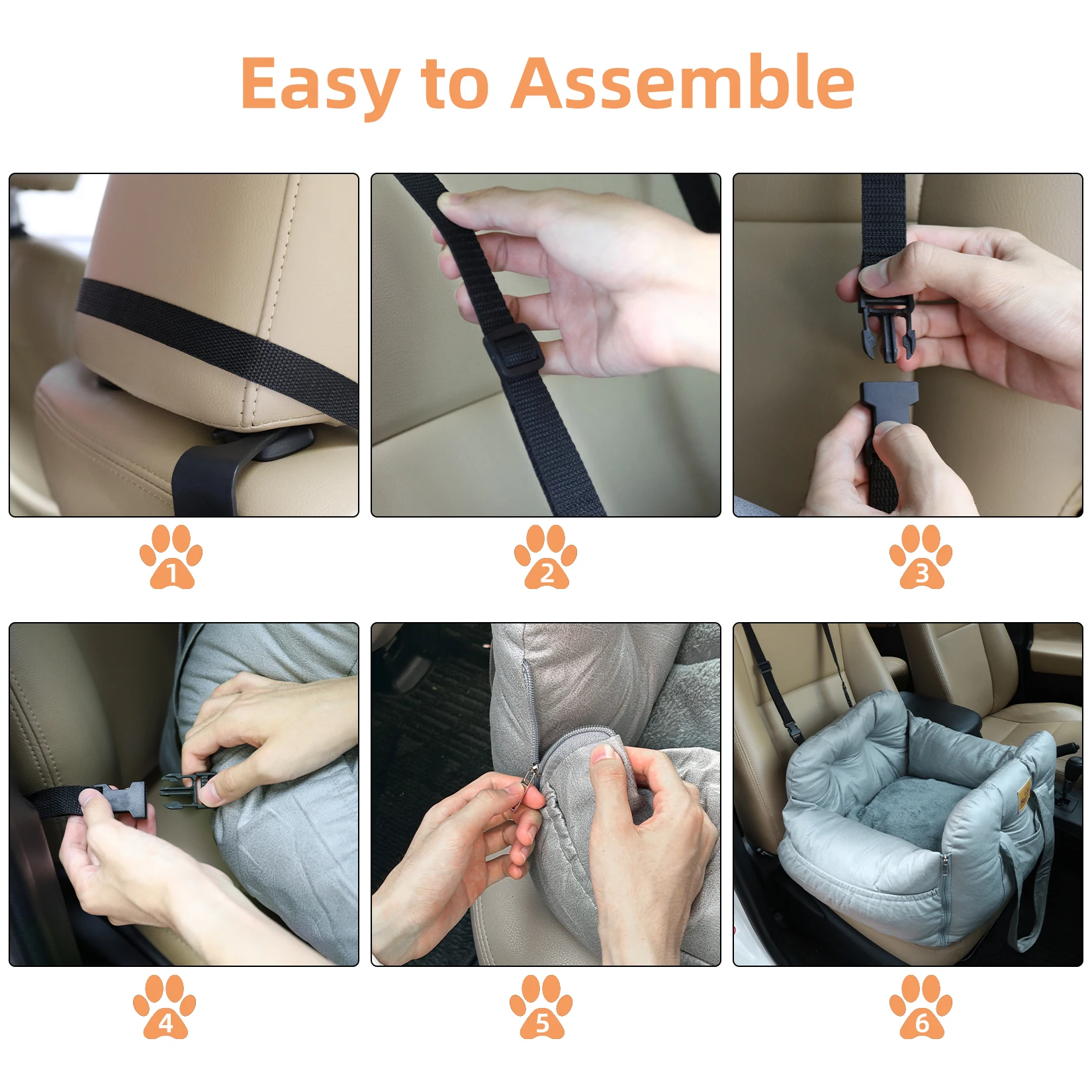 - Convenient For Use: Three pockets on the bed store pet supplies. A safety seat belt clip attaches to your dog’s collar to keep them secure while driving. The 600D anti-skid rubber bottom helps keep the bed in place.
