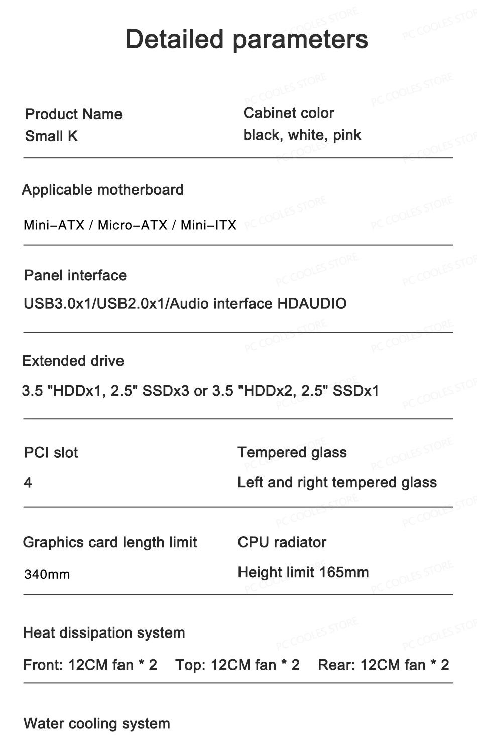 - Applicable Motherboard: Mini ATX, Micro ATX, Mini ITX