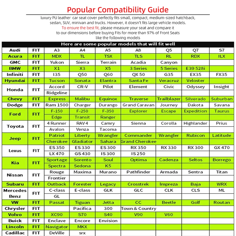 Car Seat Cover Dimensions – Measures 20.47 x 19.29 inches, suitable for cars, SUVs, trucks, and more. Not suitable for full-size trucks like Silverado or full-size SUVs like Tahoe. Please measure your seat and compare it to these dimensions before purchasing.