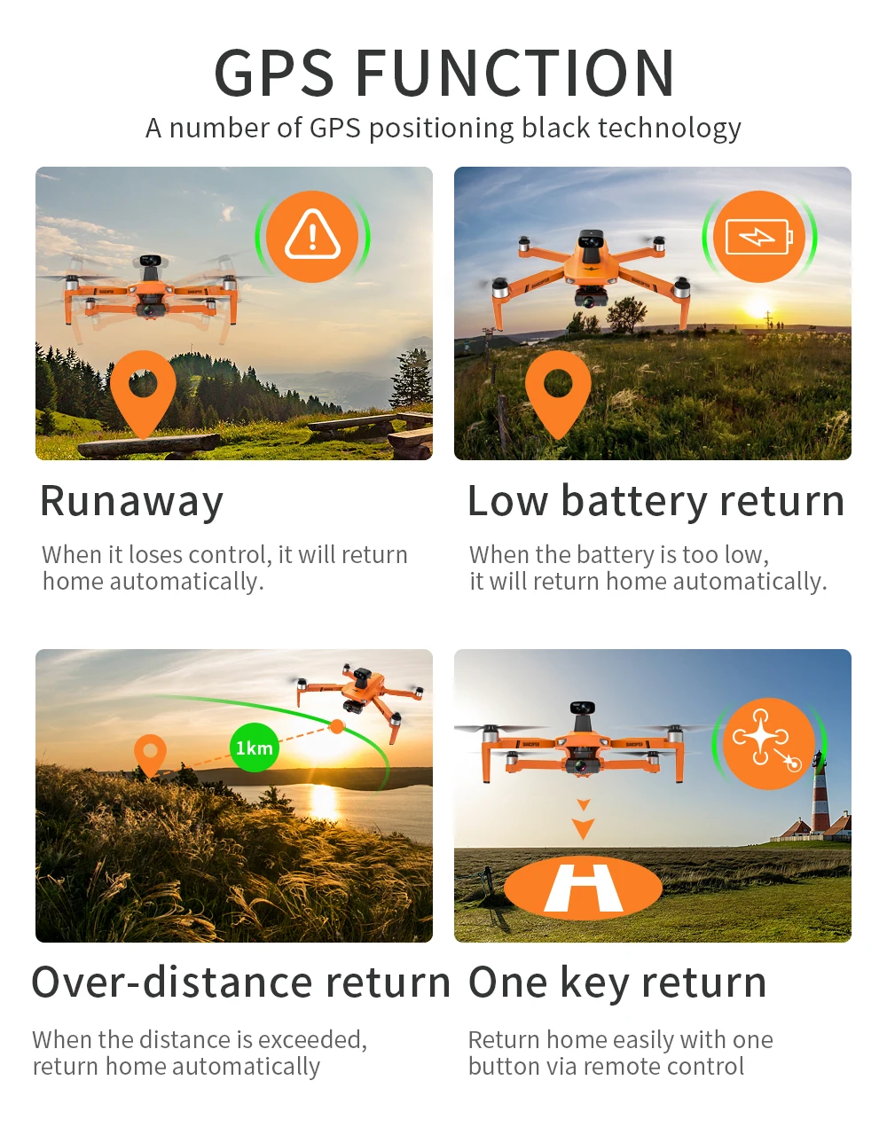 Designed with portability in mind, this foldable quadcopter is your ideal travel companion. Its compact size does not compromise its capabilities, making it perfect for adventurers and creators on the go. The drone’s GPS functionality enhances its performance by providing stable hovering, precise navigation, and automatic return-to-home features, ensuring safety and peace of mind during every flight.