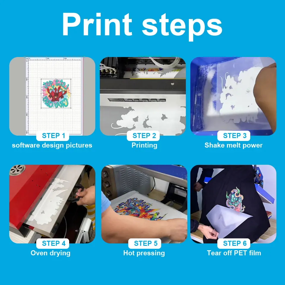 - Modify an Epson printer into a DTF printer, or purchase a DTF printer. Prepare a hot press machine, hot press sheets, oven, AcroRIP9.03 software, and consumables (DTF Ink, hot melt powder, PET films, cleaner, etc.).
