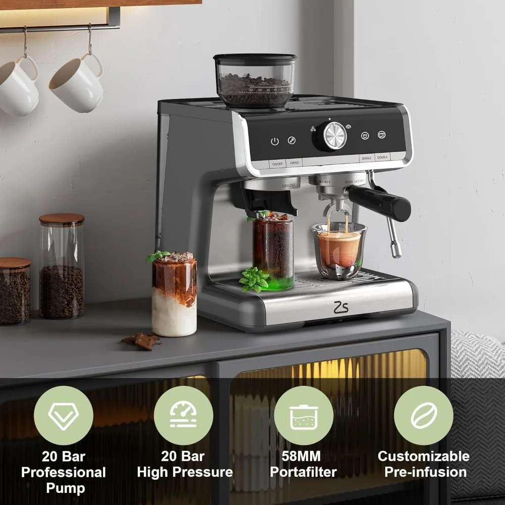 • Powerful milk frother: Adjustable stainless-steel steam wand creates silky microfoam; the detachable nozzle simplifies cleaning and can also heat water.