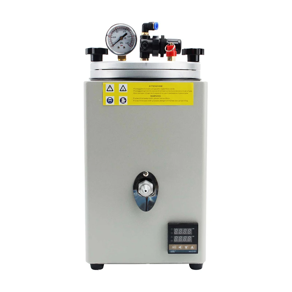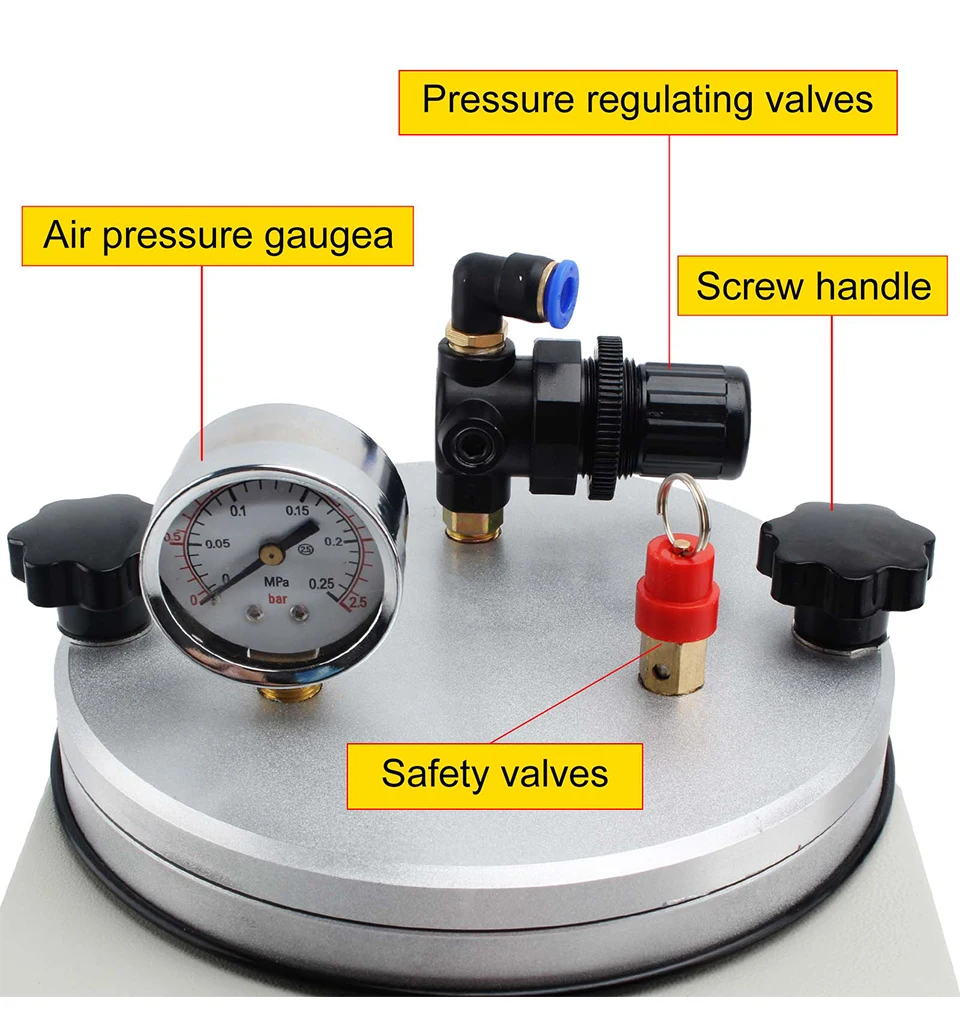 - Regulator and safety valve with a wax nozzle to display and adjust pressure clearly.