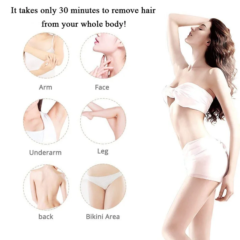 • Removes unwanted hair from hands, feet, elbows, arms, legs, armpits, and bikini line easily, quickly, and conveniently without irritating or harming the skin.