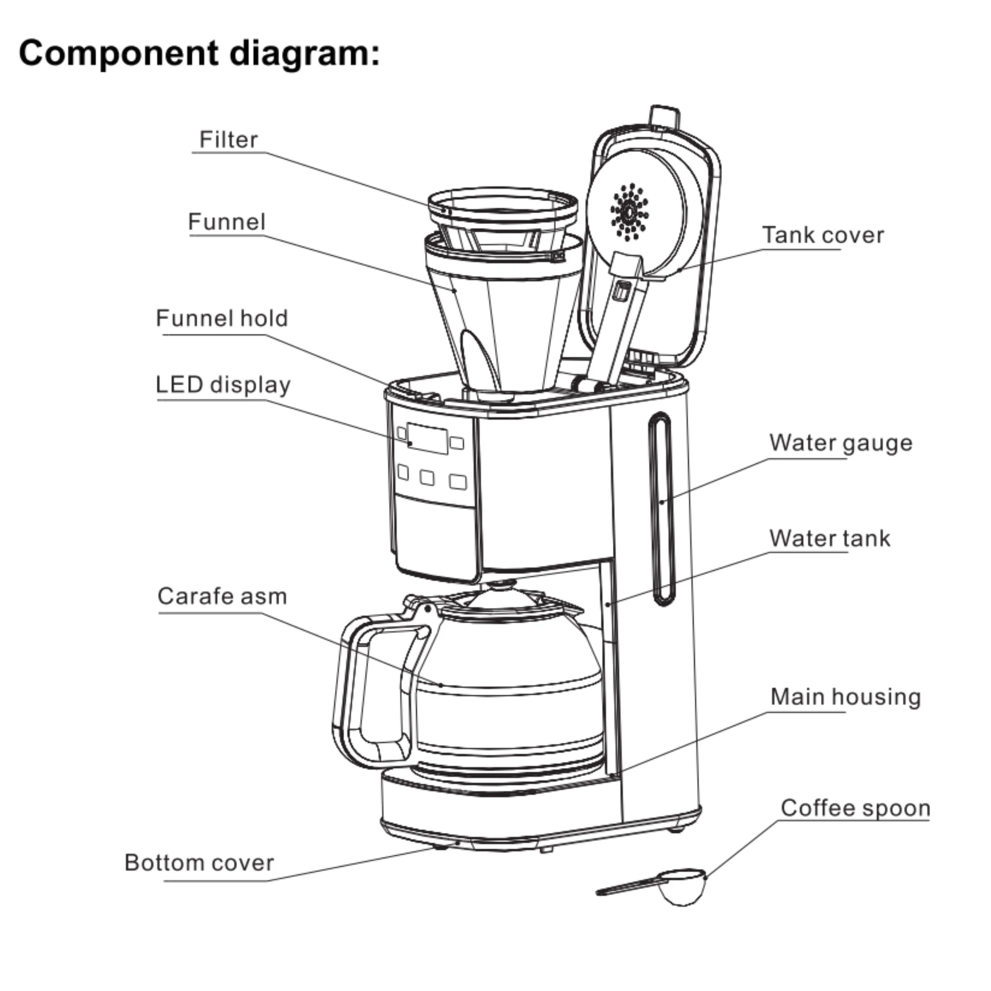 • 1000W fast-heating system delivers aromatic, full-bodied coffee in minutes