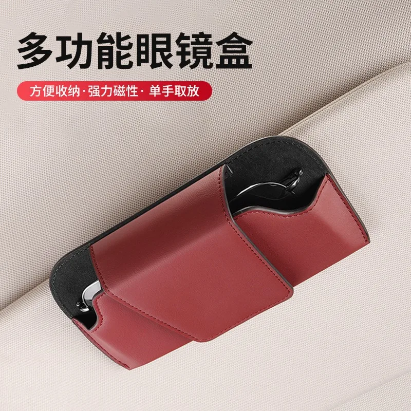 PU Leather Car Glasses Holder Sun Visor Clip Organizer