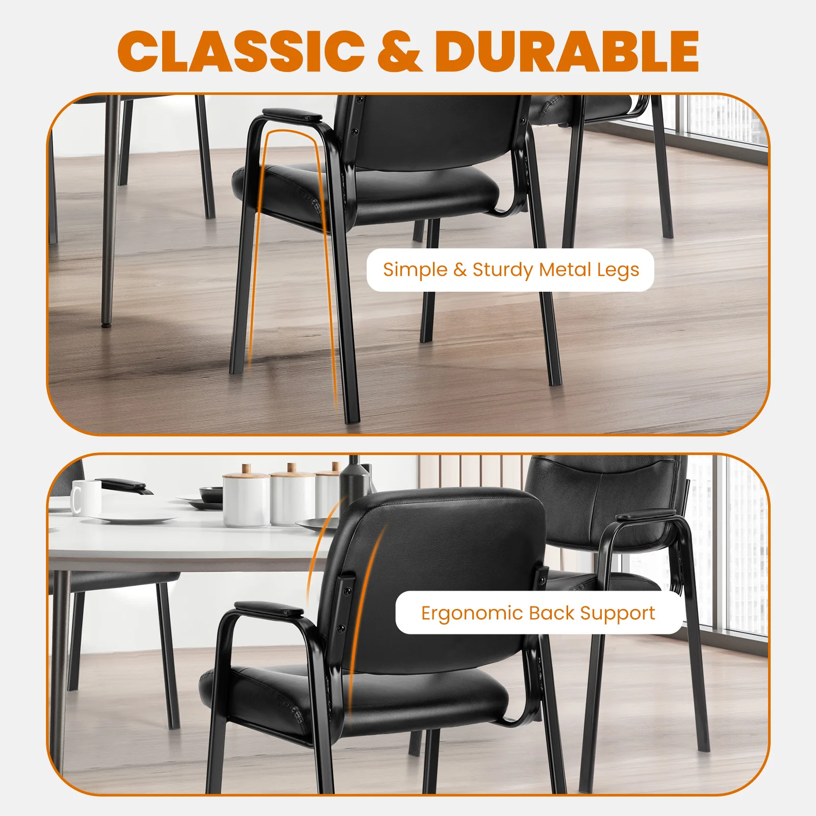 Multi-functional: This guest chair features a classic and stylish appearance, a comfortable seat, and durable construction that can match a variety of spaces. It is suitable for offices, study rooms, reception rooms, waiting rooms, and more.