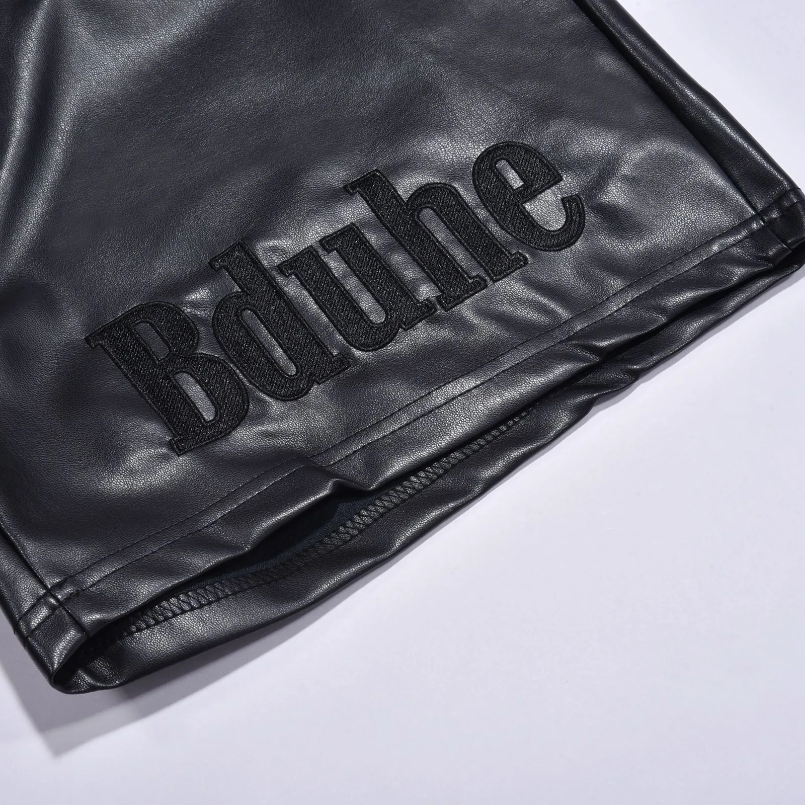 PU Leather Zipper Shorts Straight Leg Clubwear