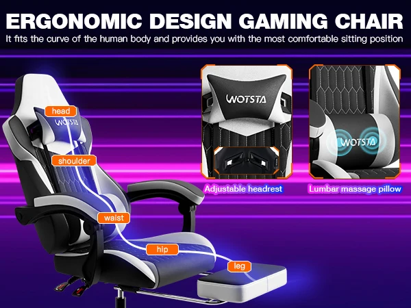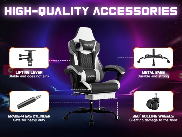 High Quality Materials: This gamer chair is made of high-quality PVC leather that has a delicate feel and is easy to clean. The interior uses a solid and thickened steel frame structure. It has undergone load-bearing testing to support long-term stability and safety, helping provide both comfort and durability.