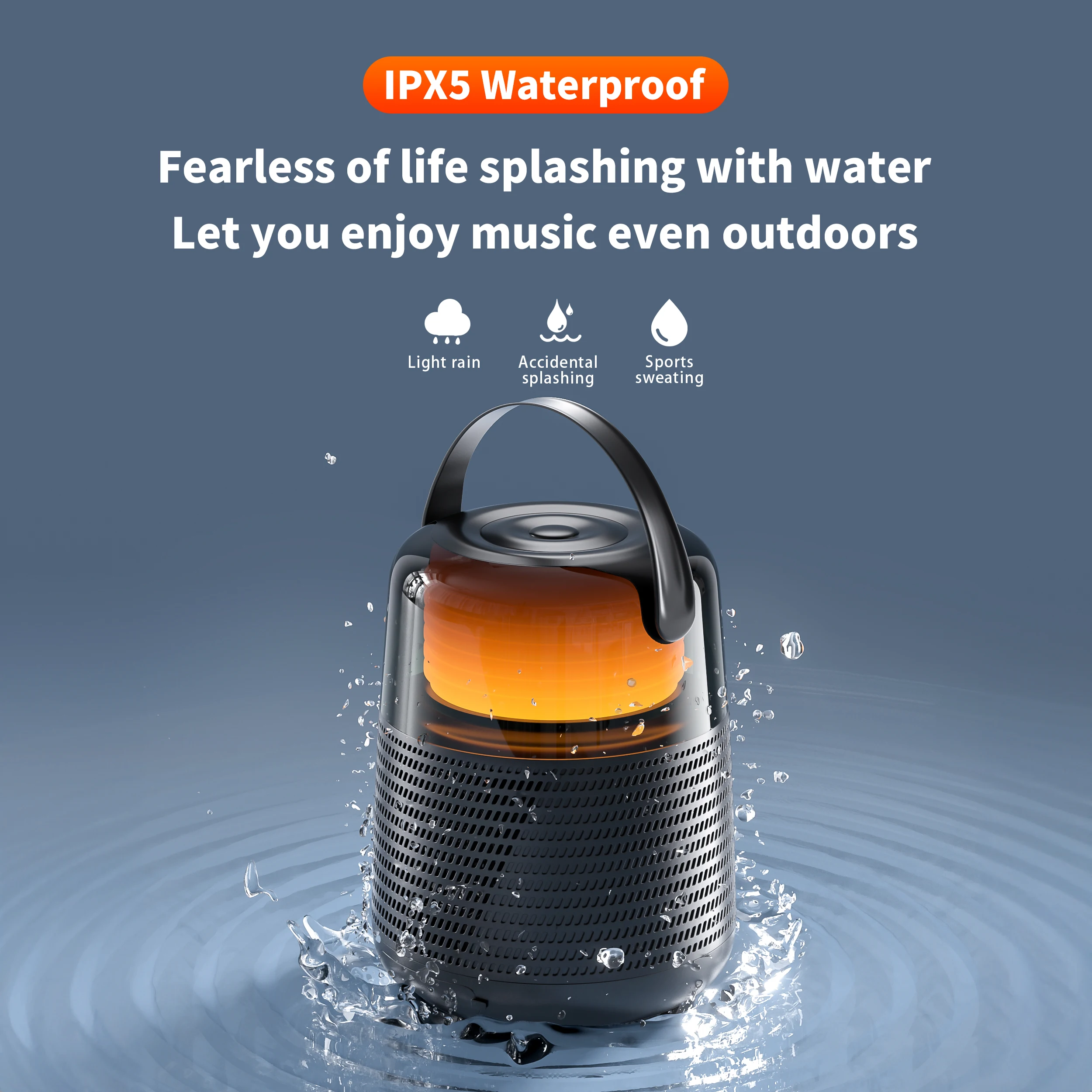 IPX5 level Waterproof. Fear no rain, fear no splashes. Allows you to enjoy music outdoors without worries!