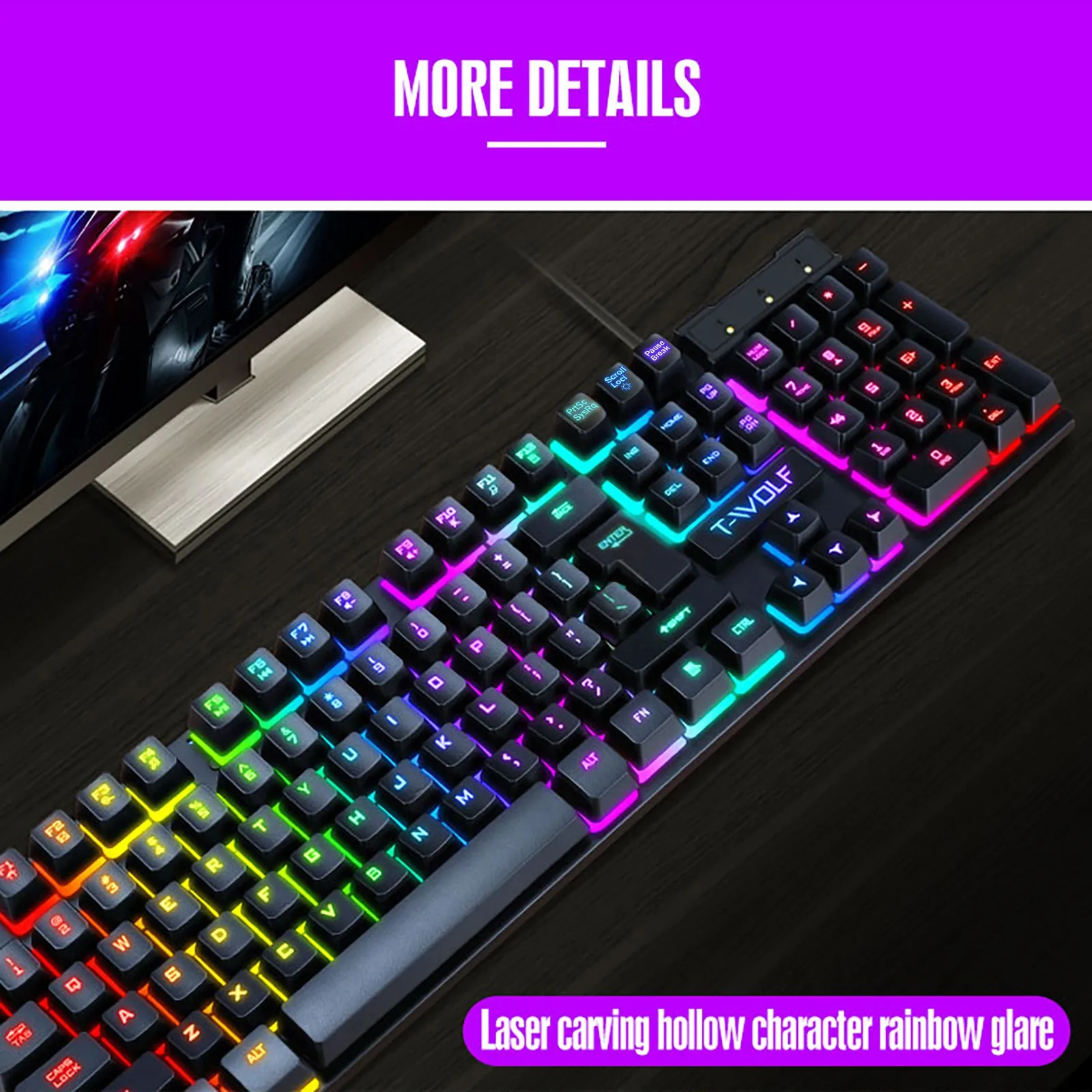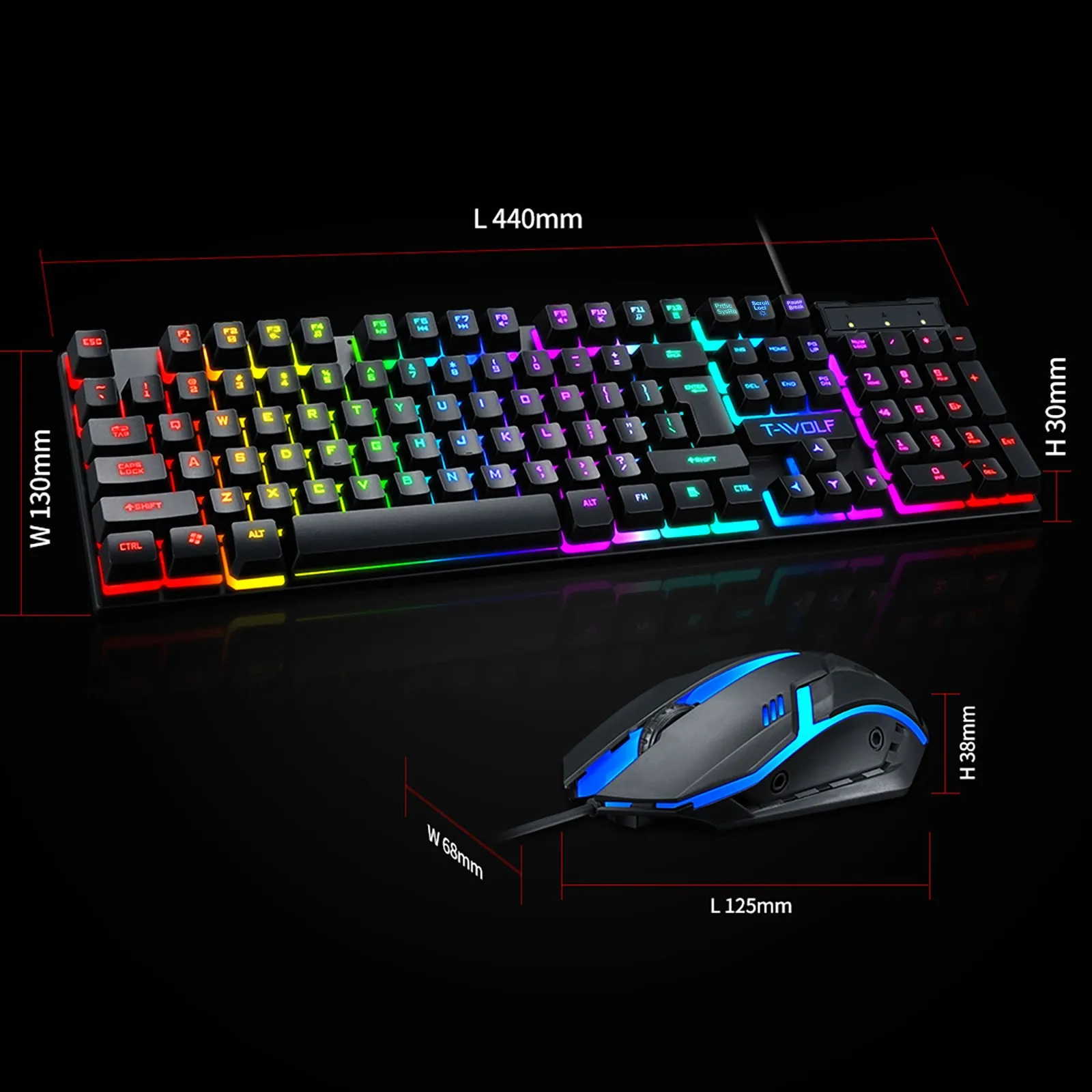 Product Name: TF200 Rainbow Backlight USB Ergonomic Gaming Keyboard and Mouse Set for Laptop